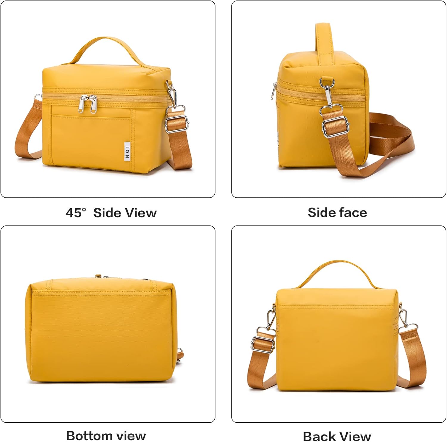 NOL Natural Organic Lifestyle Insulated Lunch Bags for Women Cooler Bag Lightweight Nylon Waterproof Lunch Box For Work (Mustard, Small)