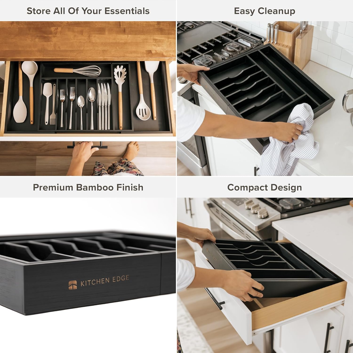 - INNOVATION WITH SUPREME QUALITY - KitchenEdge's bamboo drawer organizers are the epitome of useful design with unparalleled quality. Every piece we craft is sourced from a uniform production line, meeting the most stringent quality standards, guaranteeing a cohesive appearance and texture across all your kitchen drawers.