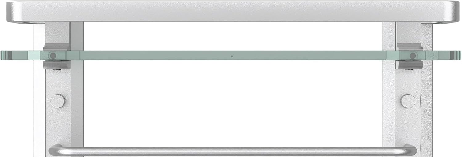- Integrated Design: Clear tempered glass shelf with an integrated towel bar, offering a sleek and functional storage solution for your bathroom