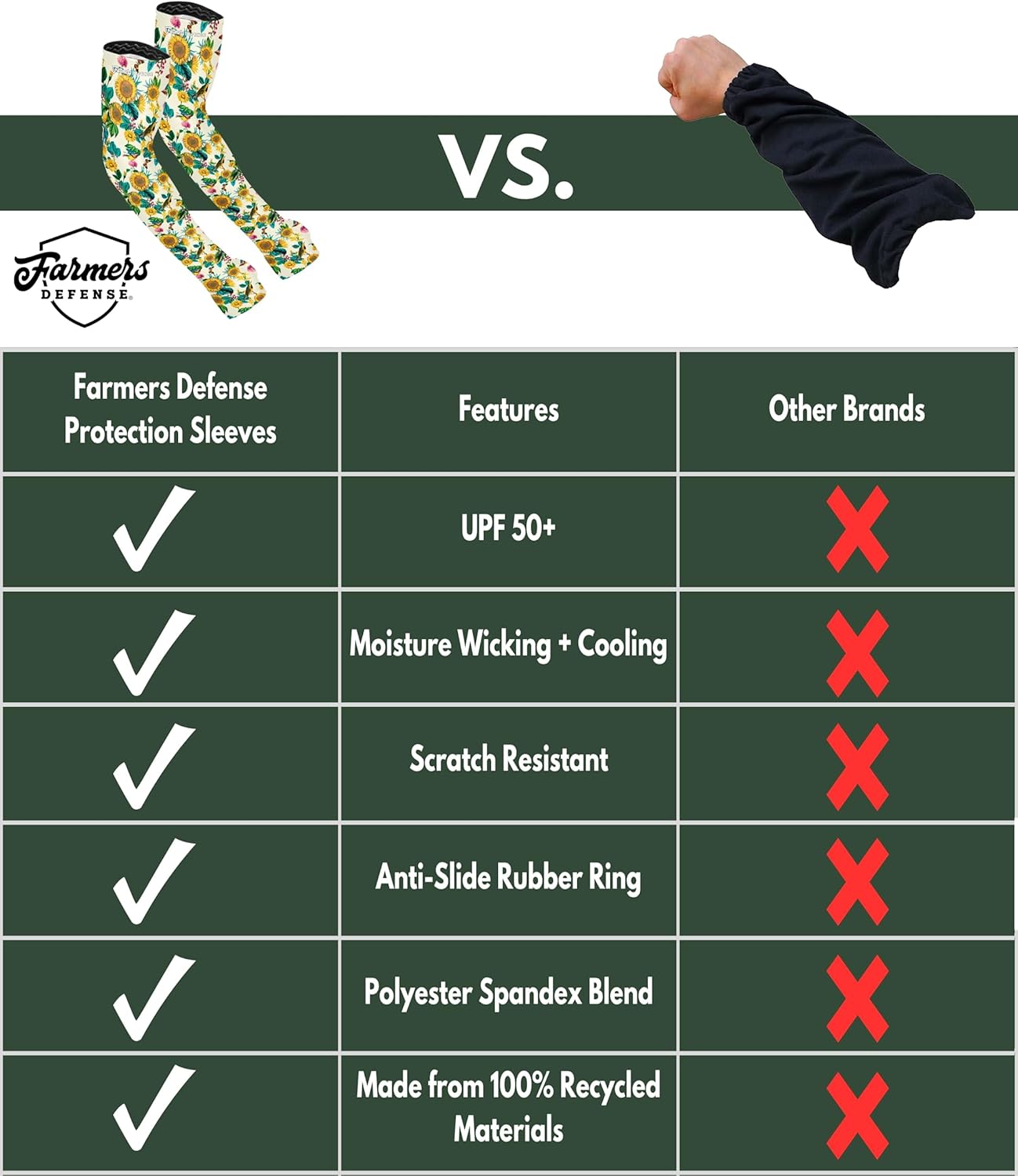 FARMER'S DEFENSE Sleeves | UV Cooling Sleeves | Anti-Scratch Sun Protection Arm Sleeves for Gardening Harvesting Outdoors