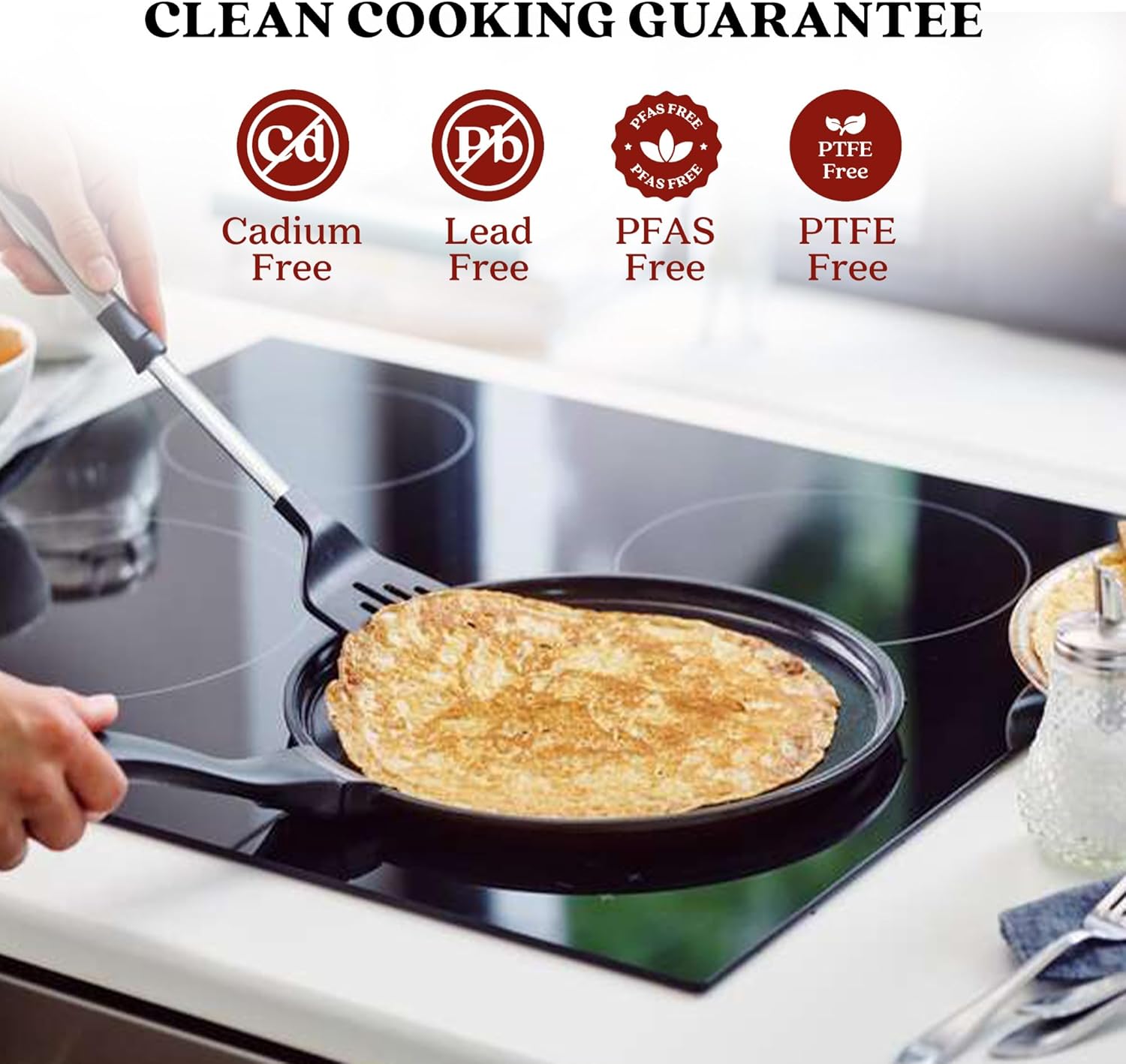 - PFAS-Free Ceramic Coating Non-toxic, nonstick ceramic is free from PTFE, PFOA & harmful chemicals—safer cooking, no seasoning required.