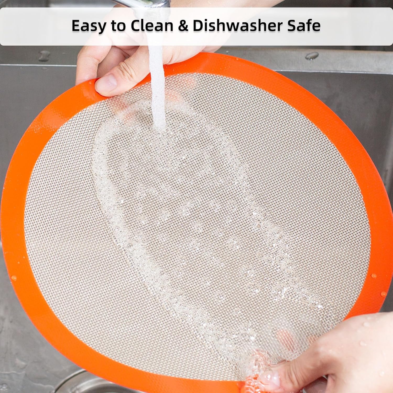 - šćSMOOTH SURFACE, TOUGH AND TENSILE INTERIORćThese non-stick silicone round baking mats 12 inch are easy to use whether you are highly skilled in baking or not. With smooth, shiny surface, you will find the cleanup an easy peasy. Just simply rinse off in warm soapy water and let it dry. If you want to maximize time saving, dishwasher is also a good alternative. On the other hand, with tough & tensile interior, theyāre very durable which helps you save money imperceptibly day by day.