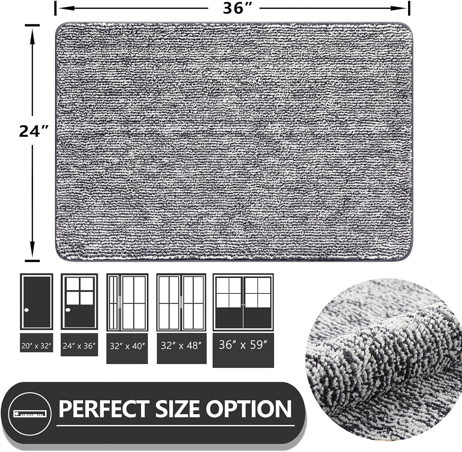 REFETONE Indoor Doormat, Front Door Mat 24"x36" Absorbent Rubber Backing Non Slip Back Door Mats, Washable Low-Profile Inside Floor Mat Door Rugs for Entryway, Resist Dirt Mud Mat for Dogs, Dark Grey
