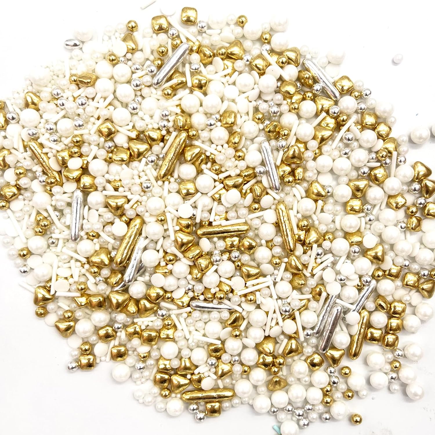 Weraru White Deluxe Gold Sprinkles Candy Mixing Size Baking Edible Cake Decorations Cupcake Toppers Cookie Decorating Celebrations Wedding Shower Party Chirstmas Supplies 130g/ 4.58oz