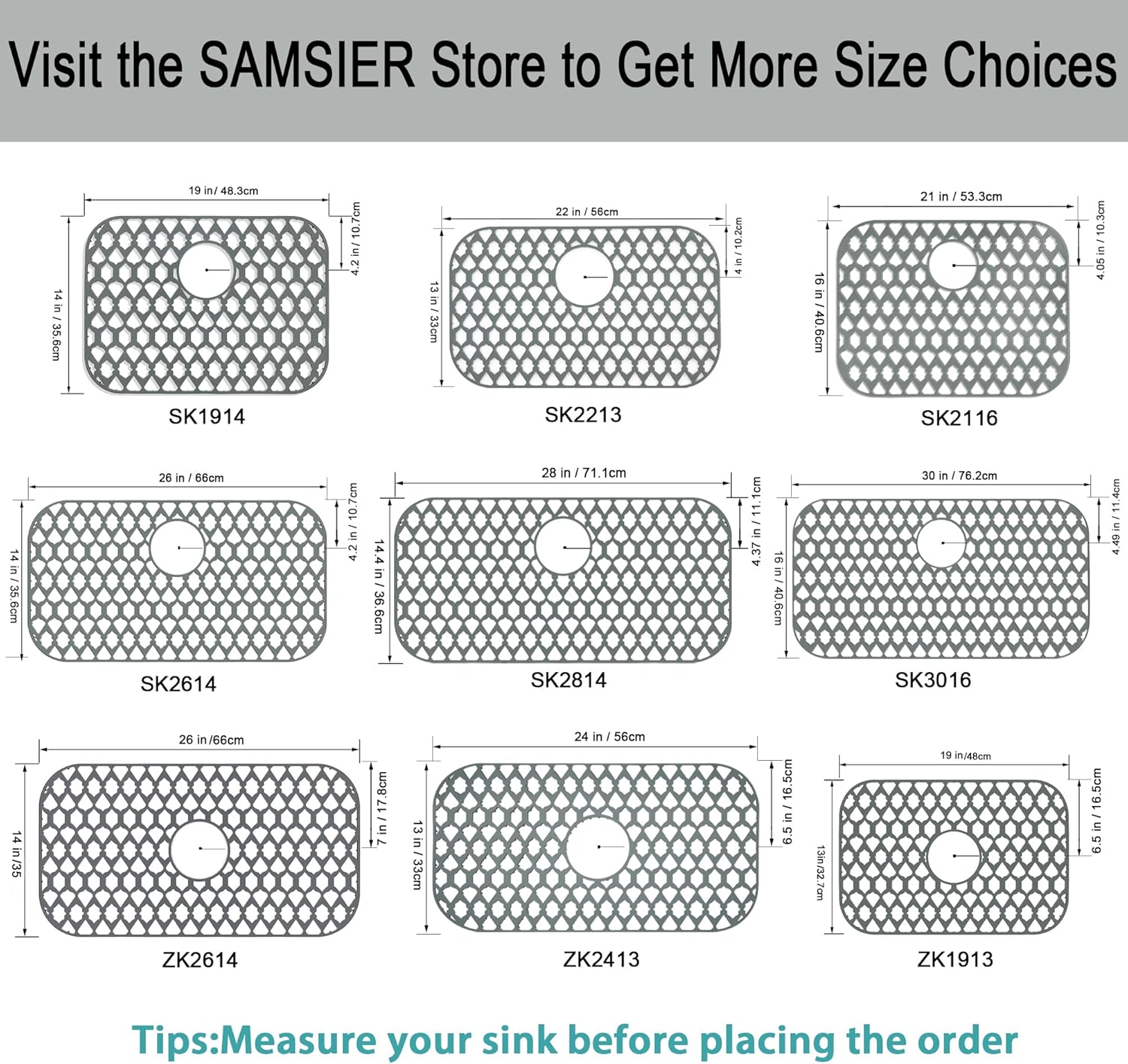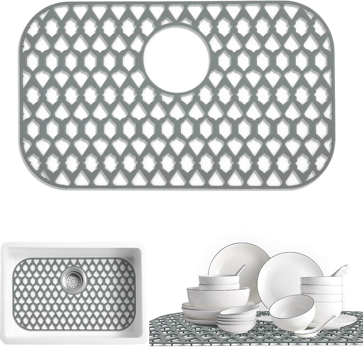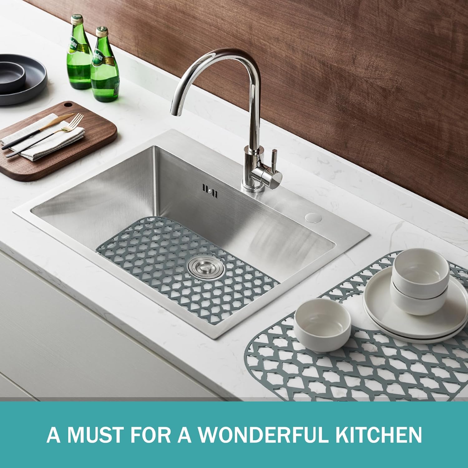 Sink Protectors for Kitchen Sink 19x14 & 21x16 & 22x13 & 26x14 & 28x14.4 & 30x16, Large Silicone Sink Mats Grid for Bottom of Farmhouse Stainless Steel Sink (22”x13”, Rear Drain)