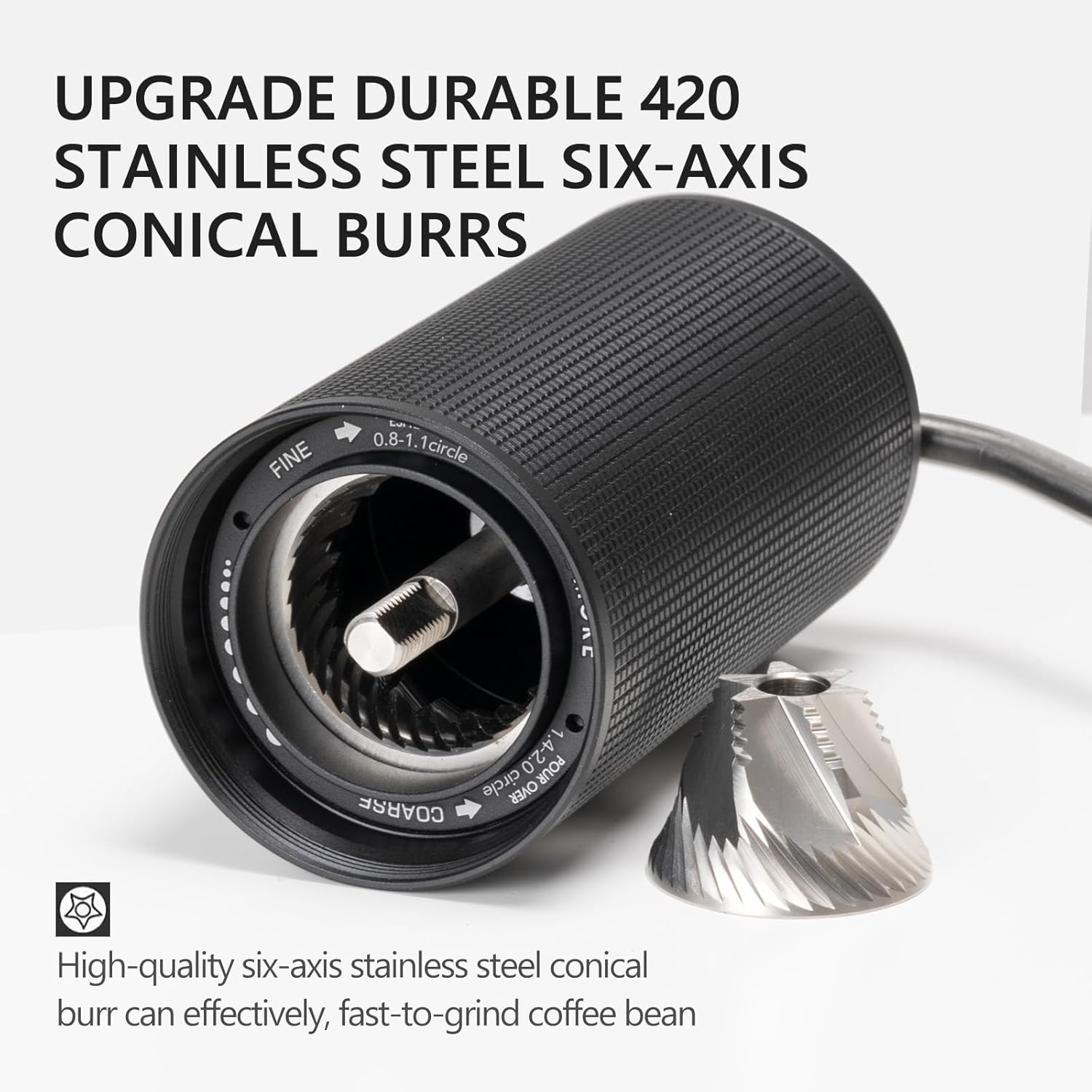 - 【Durable & Efficient】The coffee grinder espresso with CNC stainless steel conical burr ensures consistent and precise grinding, making it more effortless