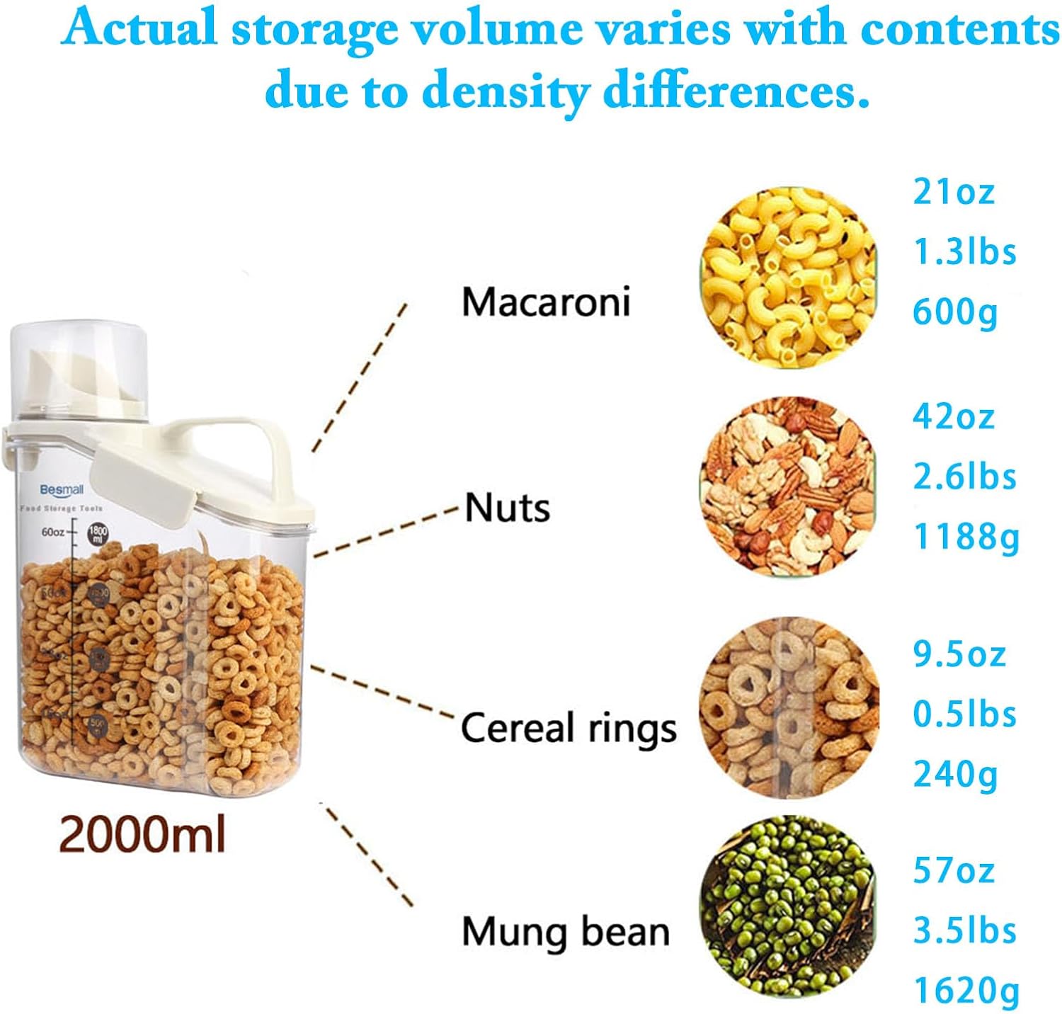 Cereal Containers Storage,2L Airtight Large Dry Food Storage Containers with Pouring Spout, Measuring Cup for Flour and Grain,BPA Free Plastic Dispenser