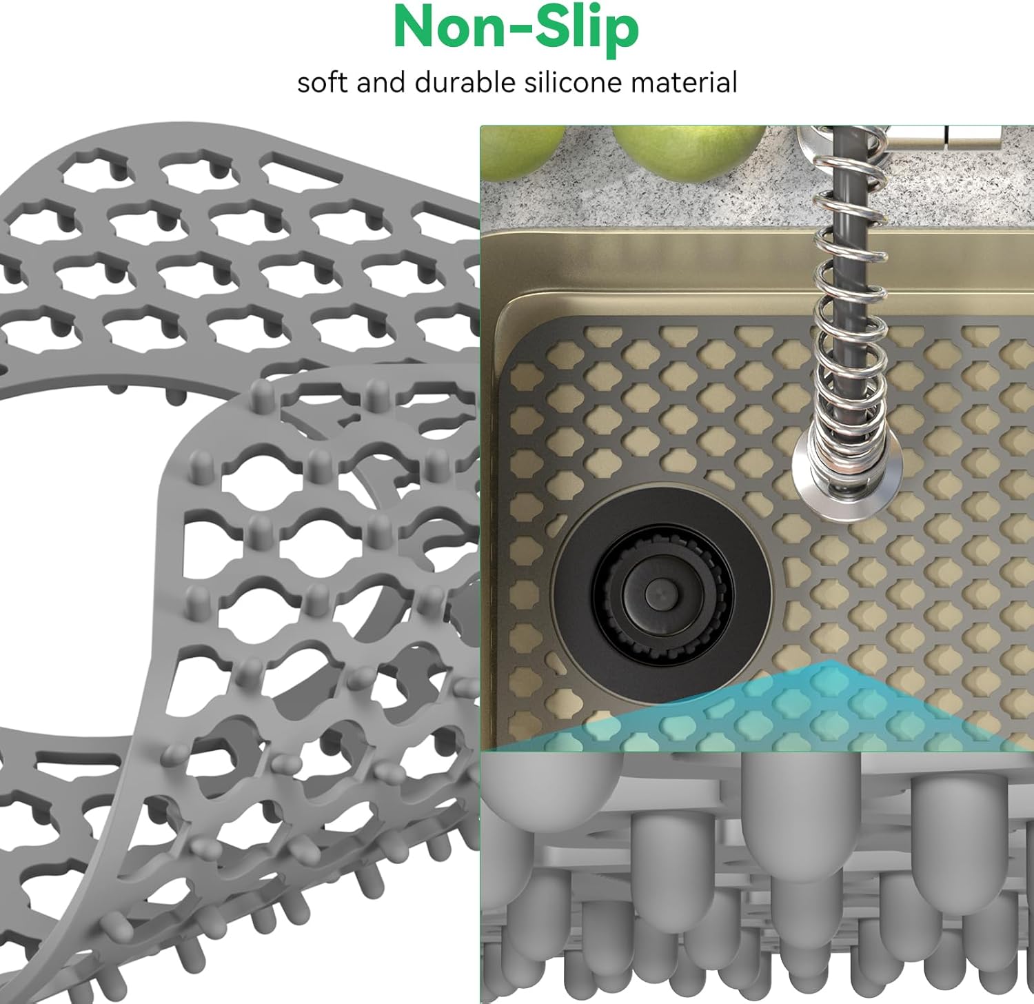 - Versatile Sink Mat: TOOVEM Silicone sink mats are bendable and foldable with good flexibility and will not deform or rust, sink protection mat won't scratch and damage the kitchen countertop or sink but also can protect glass, ceramic bowls and wine glasses from accidental breakage, providing safety for your kitchen utensils.