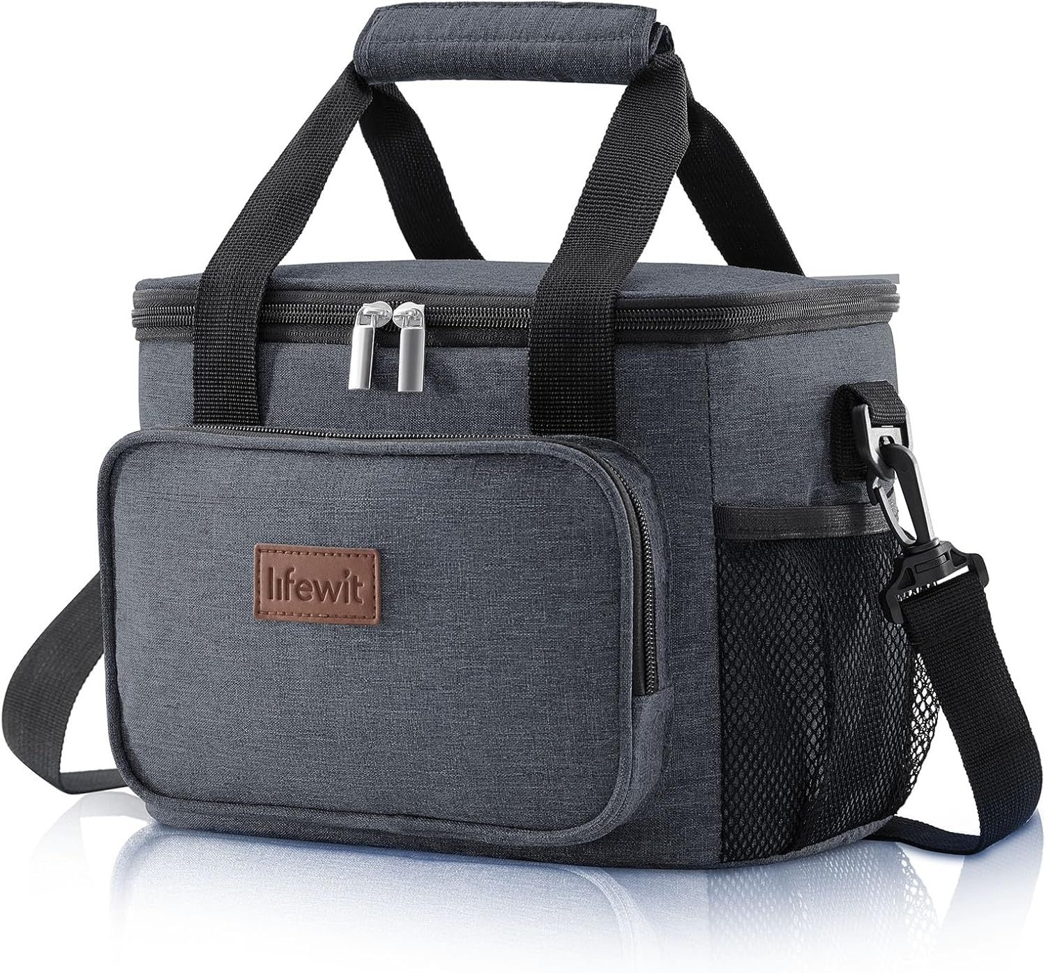 Lifewit Medium Lunch Bag Insulated Lunch Box Soft Cooler Cooling Tote for Adult Men Women, Dark Gray 12-Can (9L)
