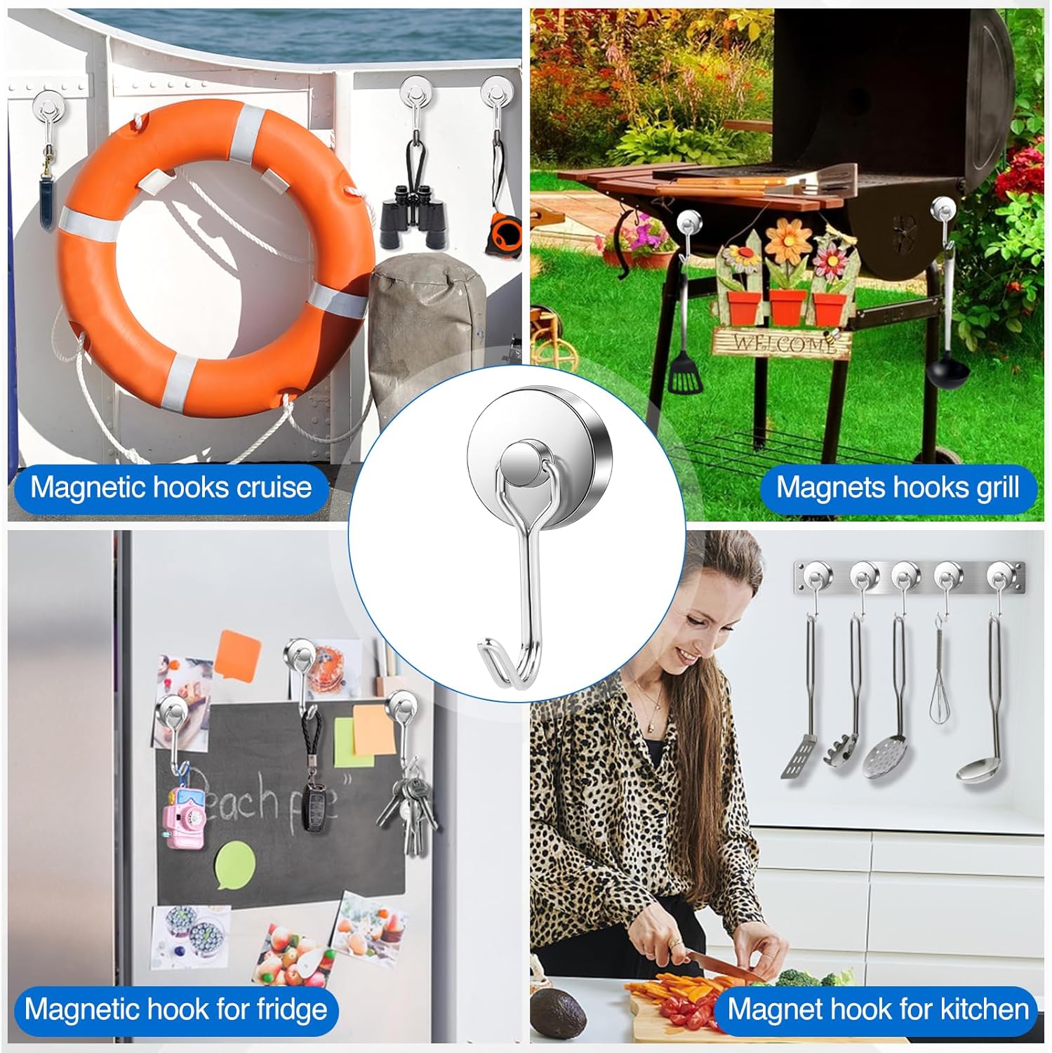 - 【 Widely Applied 】 Sturdy magnets hooks, simple structure, convenient for installation and use. Used for fixing, connecting and hanging cups, ironware, tools and other objects (hats, keys, towels). Heavy-duty magnetic hooks are also widely used in grills, cruise cabins essentials, refrigerators, kitchens, workplaces, offices, garages, indoor and outdoor environments, etc.