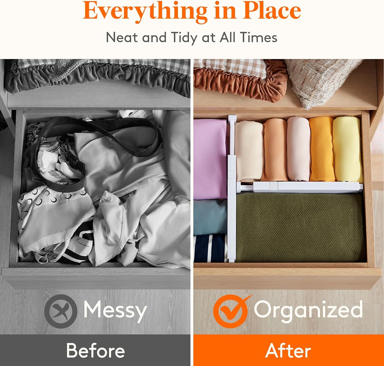 Lifewit 4 Pack Drawer Dividers 4" High,11-17" Adjustable Dresser Drawer Organizers for Clothes, Expandable Dresser Separators in Bedroom/Bathroom/Kitchen/Vanity/Office Organization and Storage, White