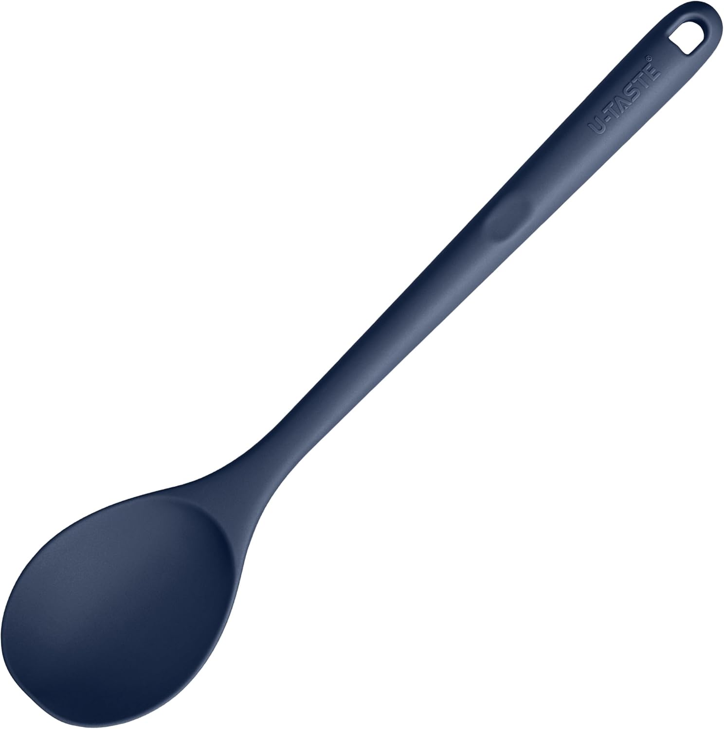 600ºF Heat Resistant Silicone Spoon: U-Taste 13.3in Solid Kitchen Cooking Spoon, Nonstick Food Grade Large Soup Rubber Utensil for Mixing, Serving, Stirring, Basting, for Pot Cookware (Midnight Blue)