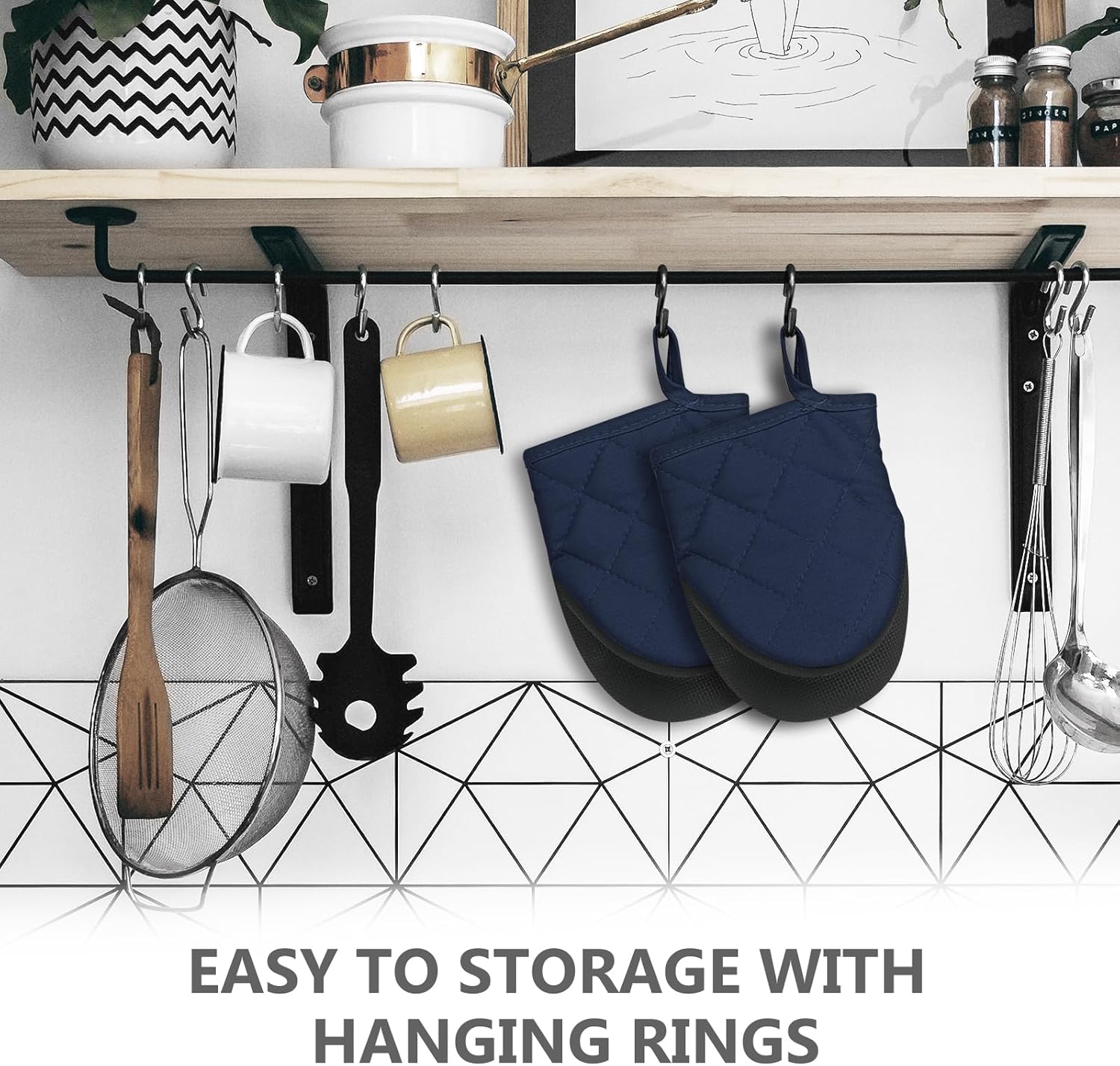 - 【Easy Clean & Storage】- If you get any food on them while wearing, just gently swish around in soapy water or just wipe them clean. Both the surface of silicone and inner lining can be cleaned. You can hang it up with the nice hanging hook in the cuffs.