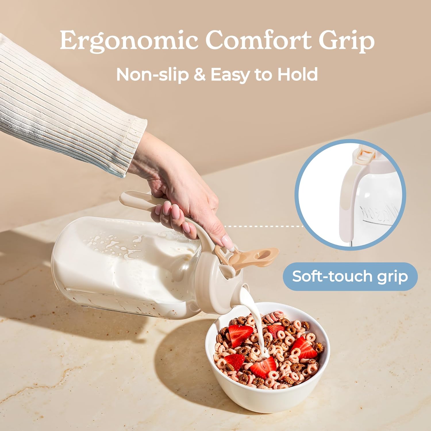 - Measuring Marker: This pitcher with spout features measurement markers can easure with ease. Compatible with 3 and 3/8in mason jars, use it as an breastmilk pitcher or versatile glass juice pitcher
