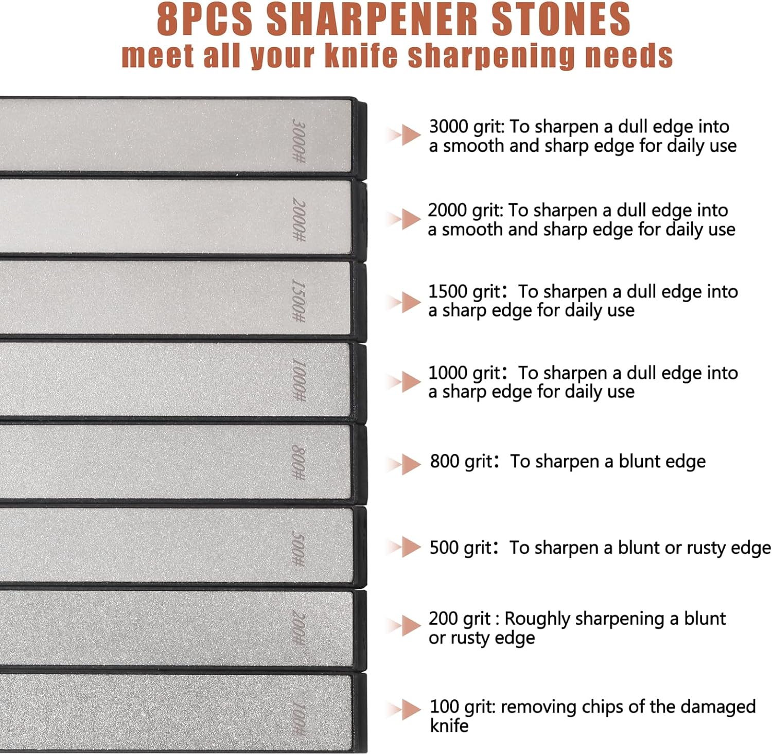 - 【Affordable & Practical Set】The set includes 8 diamond sharpening plates. This 8 grit combination allows customization of the sharpening process to meet speed and smoothness needs.
