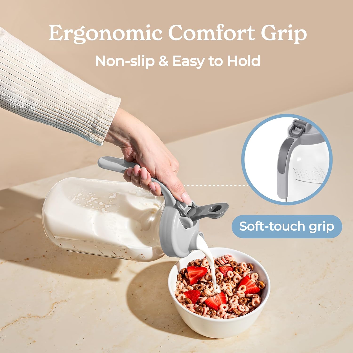 - Measuring Marker: This pitcher with spout features measurement markers can easure with ease. Compatible with 3 and 3/8in mason jars, use it as an breastmilk pitcher or versatile glass juice pitcher