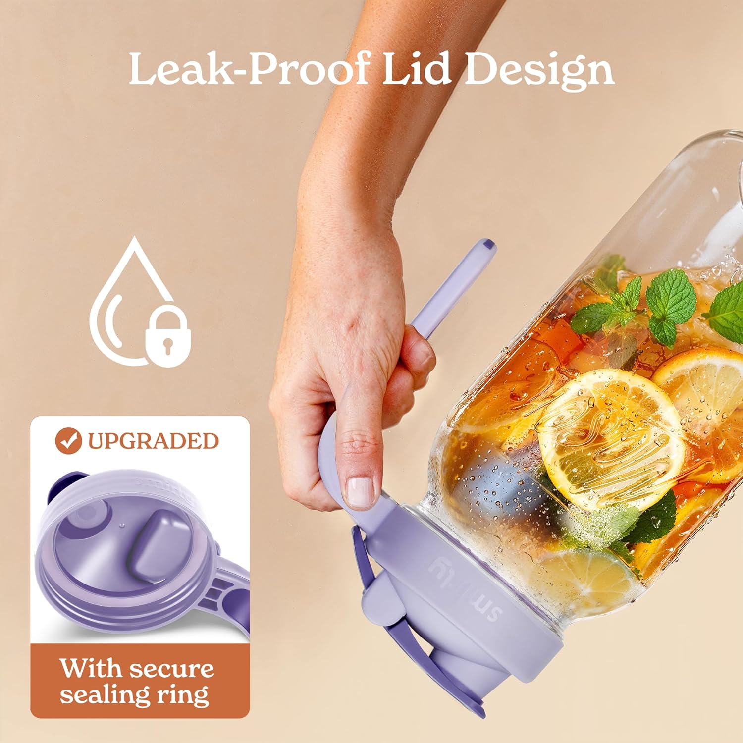 SMIRLY 64 oz Mason Jar Pitcher,Glass Pitcher with Wide Mouth,Water Jug with Double Leak Proof Lid for Iced Coffee,Hot Water,Breast Milk
