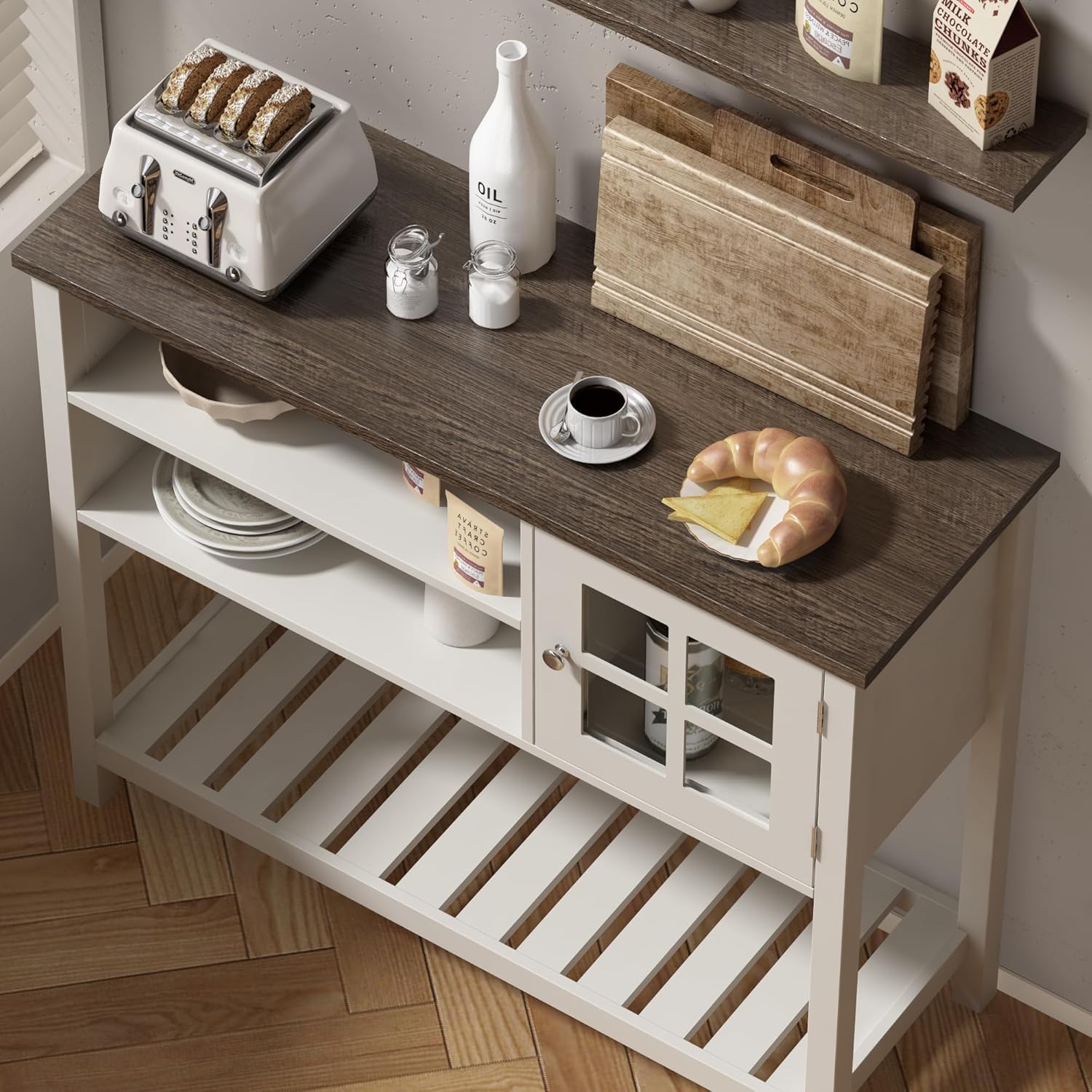 ChooChoo Farmhouse Coffee Bar Cabinet, Buffet Cabinet with Storage, Sideboard Buffet with Glass Door, Console Table for Kitchen, Hallway, Entrance, White