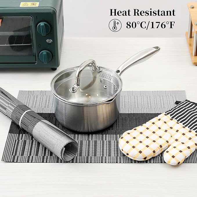 - Protects Your Table: Keep your table safe from scratches and spills with our heat-resistant placemats. They can withstand temperatures up to 176℉(80℃) and help keep food warm. Add style to your dining setting while ensuring table protection.