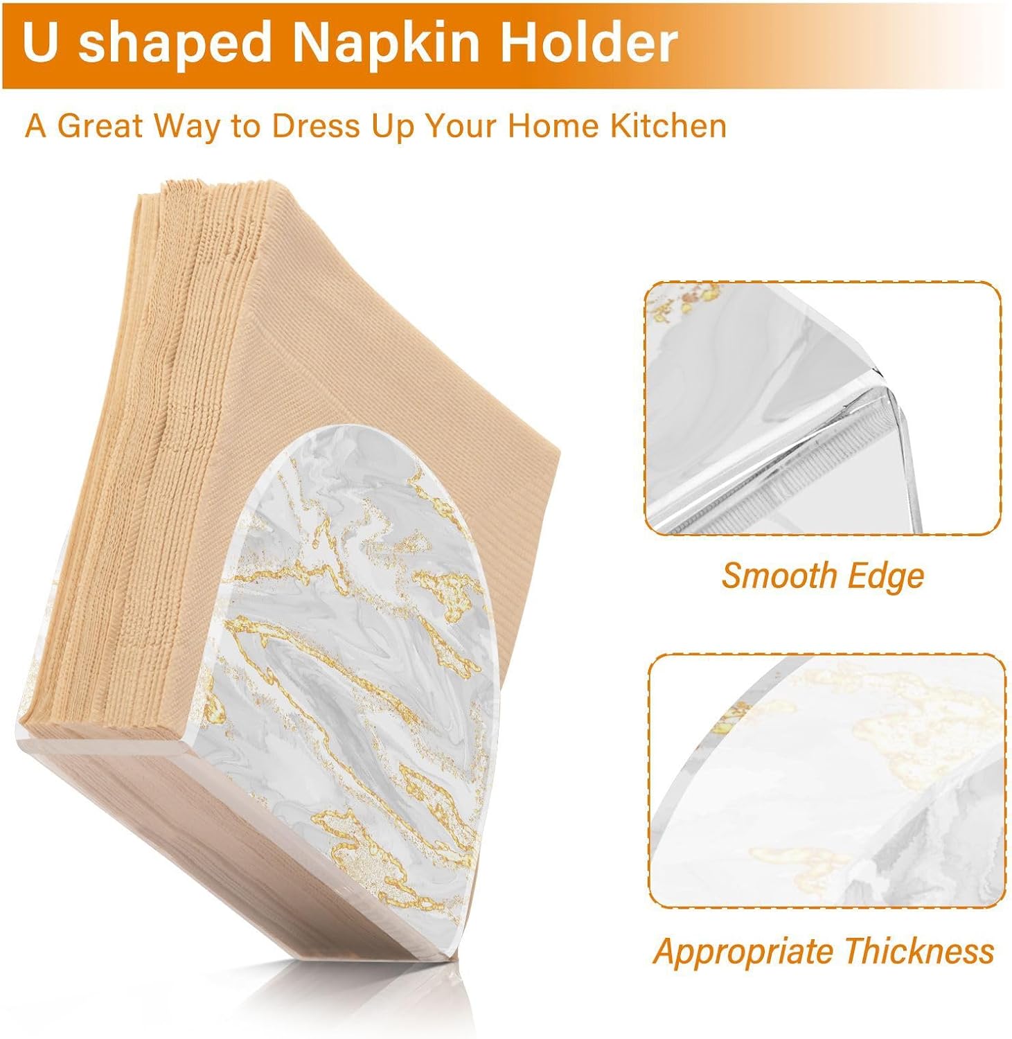 Gold White Marble Napkin Holder for Table Paper Napkins Holder Acrylic Tissue Dispenser Kitchen Dining Room Bathroom Party Car Decor