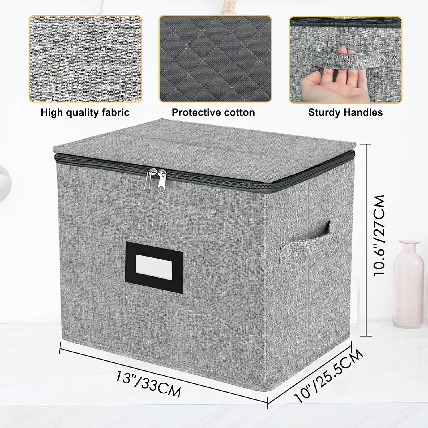 - đ„ăConvenient Design for Youă-Our champagne flutes storage box holds 12 champagne flutes, the china storage case is 13" w x 10" d x 10.6" h. Each inside compartment is 3.25" x 3.3ââ.our champagne glass storage box is foldable, and can be easily carried or stored when not needed.