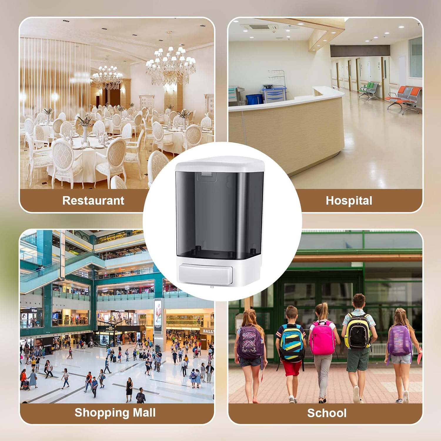 - Versatile and Wide Ranging Applications: the wall mounted shampoo dispenser can be pasted or mounted on the dry wall or tile, ideal for use in bathrooms, kitchens, offices, schools, hospitals, hotels, and restaurants; It is versatile and adaptable, fitting into public or private setting with ease