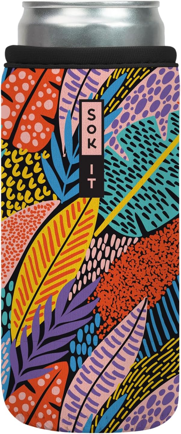 Sok It CanSok Sleeve for Beer & Soda Insulated Neoprene Cover (Feathered Foliage, 12oz Slim Can Sleeve)