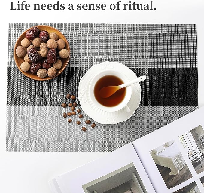 - Elegant and Practical Design: With a luxurious vinyl woven texture, precision cutting, and heat-trimmed edges, our double-sided placemats offer a sophisticated and practical solution. They provide a non-slip surface, resist fading, and are easy to clean, elevating your dining experience.