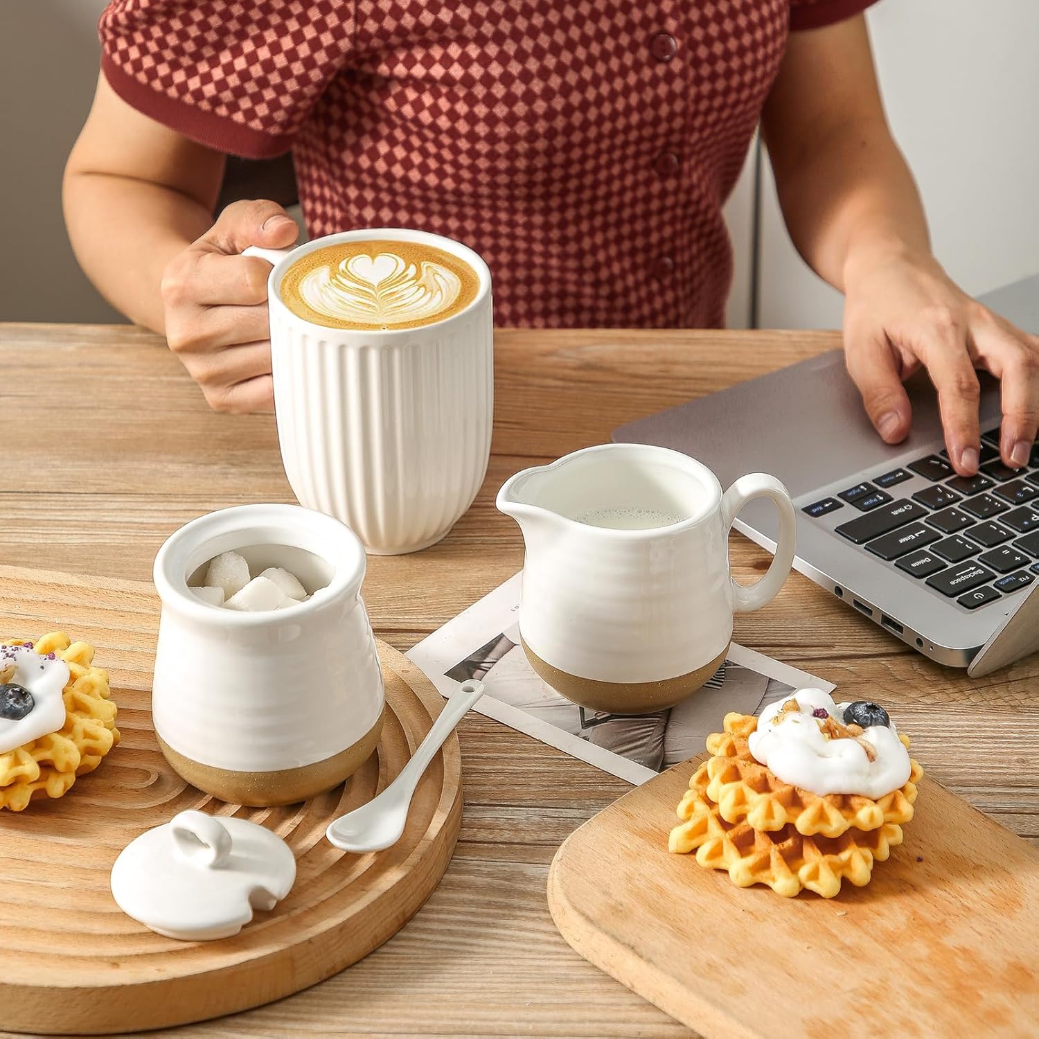 - Unique Hue: Elevate your dining experience with our sugar and creamer set, featuring a captivating white color that adds a touch of delight to any table. It's not just a milk jug; it's a decorative masterpiece for your dining room, kitchen, or coffee bar, enhancing the artistic ambiance of your home.