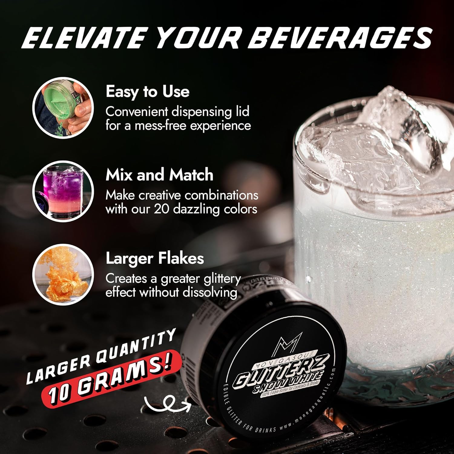 MONÉGASQUE Snow White Edible Glitter for Drinks 10g – White Edible Glitter for Cakes & Halloween Cocktails - Champagne & Cocktail Drink Shimmer - Cake Decorations Spray & Food Decorating Sprinkles