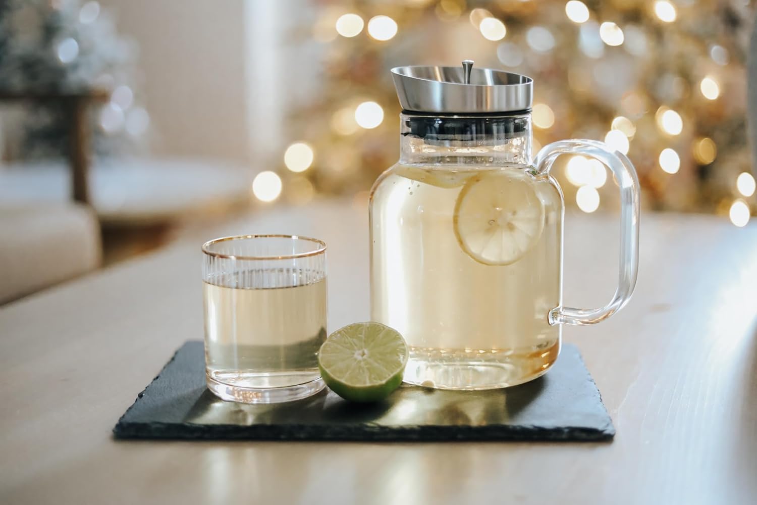 - Crafted for Practicality: Handmade from premium-quality, durable borosilicate glass, this pitcher features a non-drip spout and a generously sized, comfortable handle. The crystal-clear glass and stainless-steel components do not absorb flavors or odors, ensuring a clean taste every time. And when you're done, cleaning is a breeze as it's dishwasher safe.