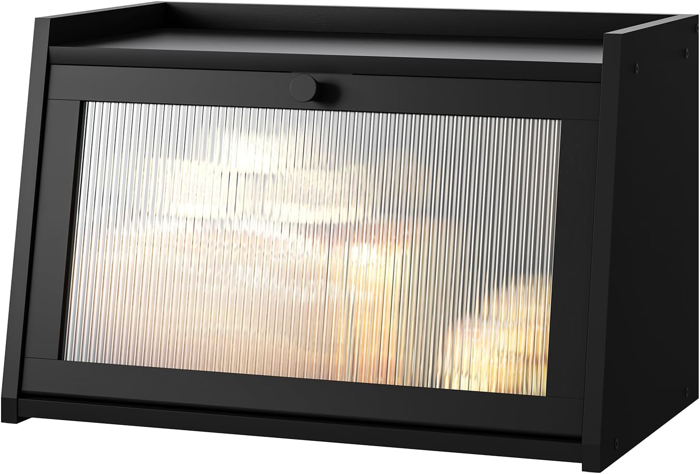 Bread Box for Kitchen Counter, Large Bamboo Bread Storage Container with Wavy Arcylic Door, Bamboo Wooden Farmhouse Bread Box for Your House (Black, Medium)