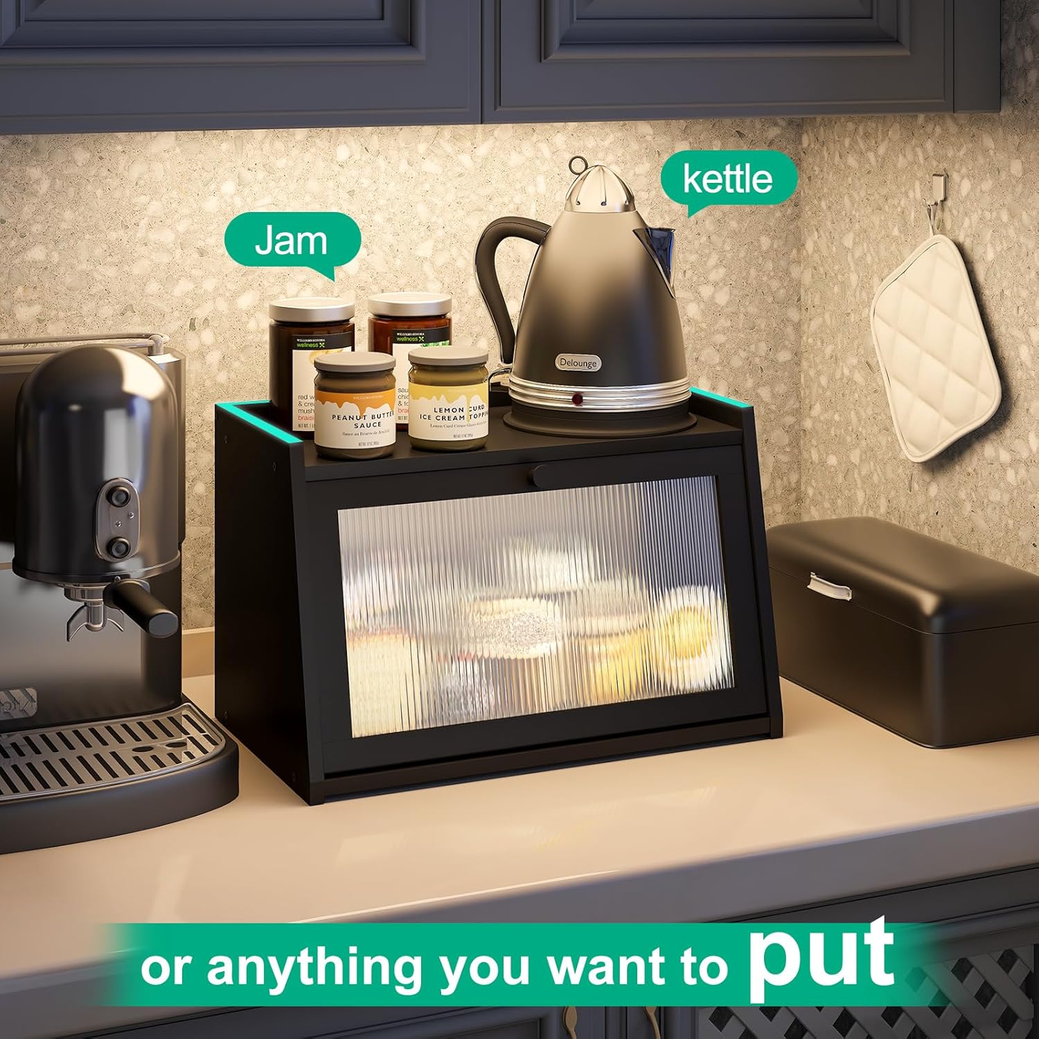 - [Flat Top Design] Super load-bearing capacity, any kitchen items you want can be placed on the bread box.