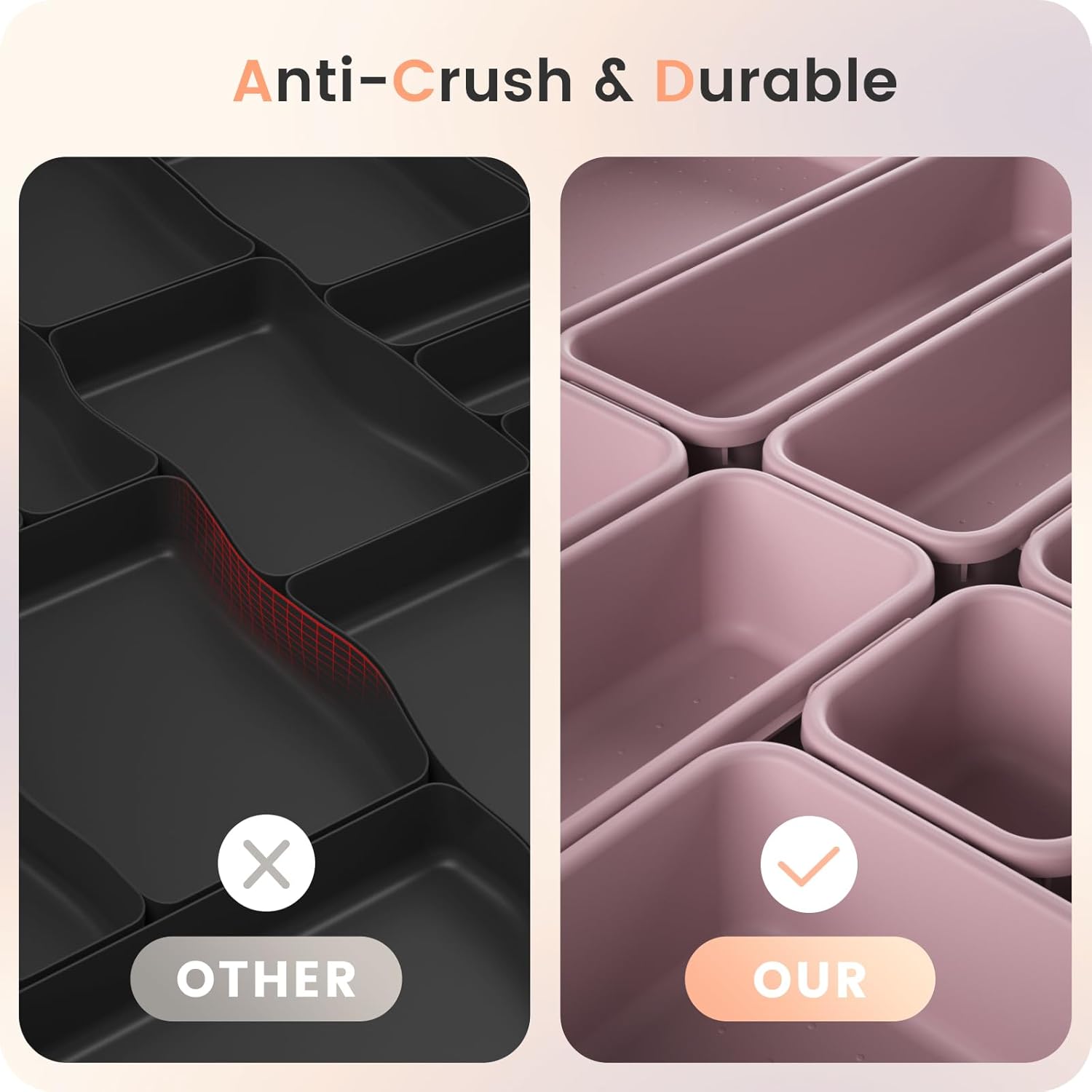 - 【Make Everything Organized】 ---- These drawer dividers trays are perfect for any place in your home. Fit all kinds of drawers, such as vanity / bathroom / kitchen/ office drawers/ craft room, ideal for organizing cosmetics, makeup tools, hair accessories, jewelry, pins, office supply, craft supplies, utensils, etc.