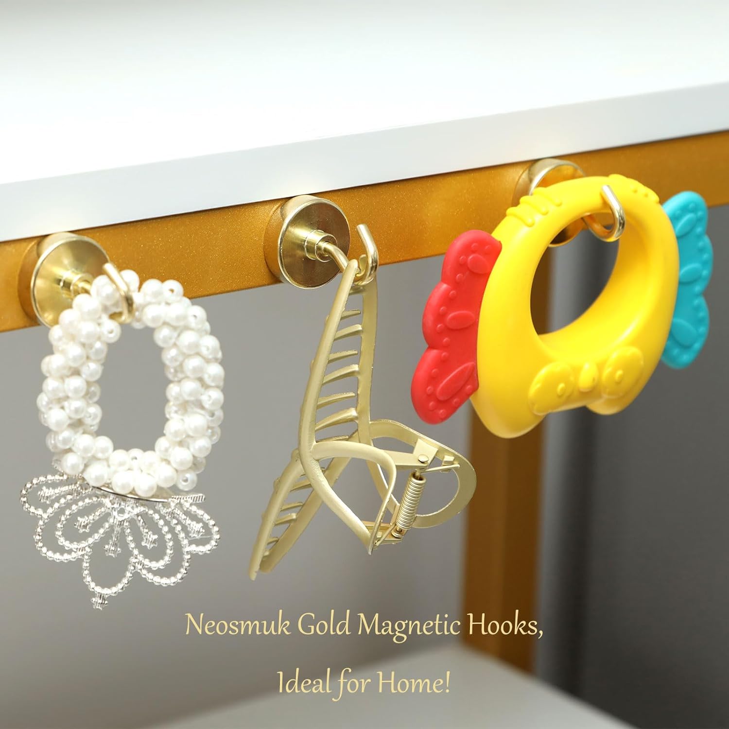 Neosmuk Magnetic Hooks Heavy Duty,Strong Magnet with Hook for Fridge, Super Neodymium Extra Strength Industrial Hooks for Hanging, Magnetic Hanger for Toolbox, Cruise, Grill(Golden,10 Pack)