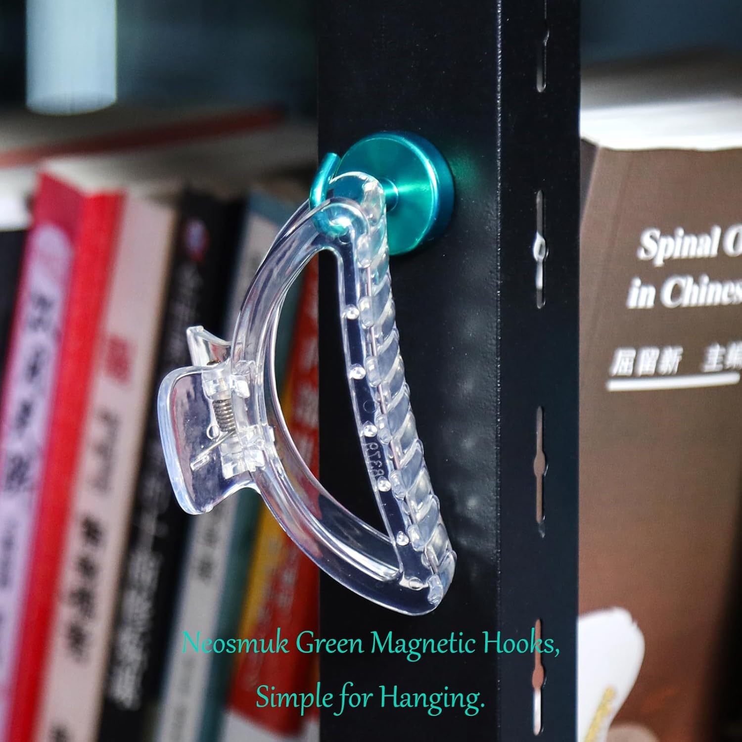 Neosmuk Magnetic Hooks Heavy Duty,Strong Magnet with Hook for Fridge, Super Neodymium Extra Strength Industrial Hooks for Hanging, Magnetic Hanger for Toolbox, Cruise, Grill(Green,10 Pack)