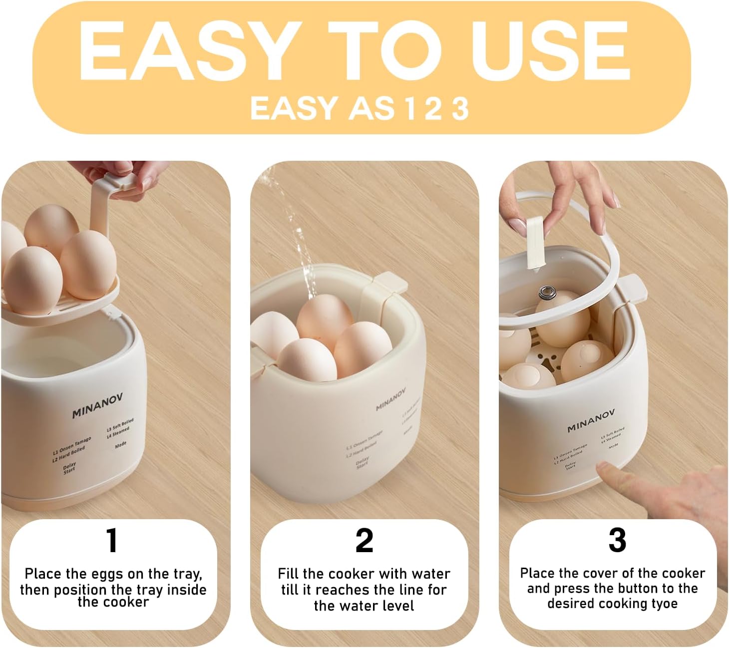 - Ideal Gift: The Minanov Rapid Egg Cooker makes for the perfect gift idea on birthdays, Christmas, Thanksgiving, or any special occasion. Its sleek and modern design seamlessly complements any kitchen decor. Beyond the home kitchen, it's an ideal companion for camping, RV trips, and outdoor cooking adventures. For busy professionals and students, this thoughtful gift adds convenience to their daily routine.