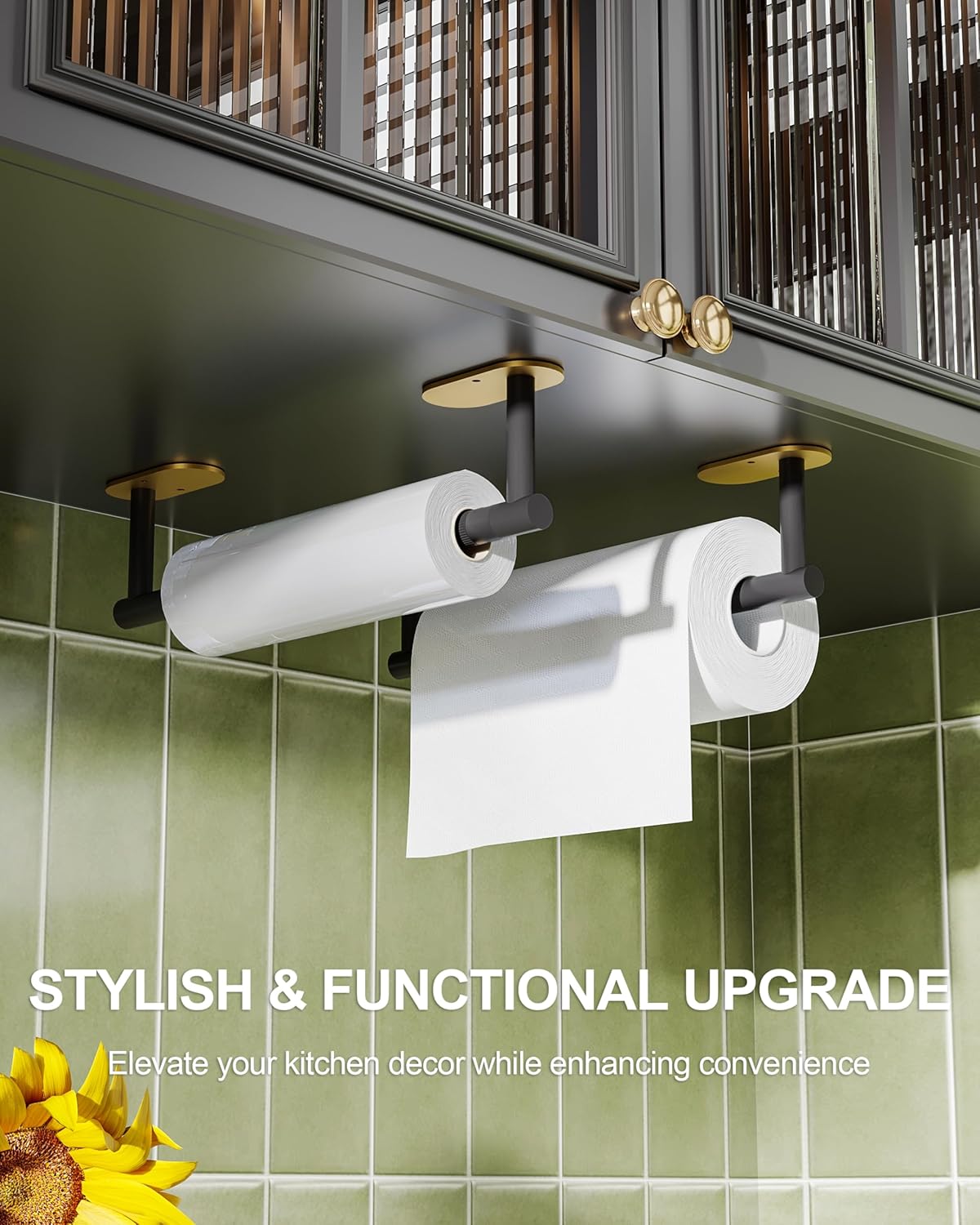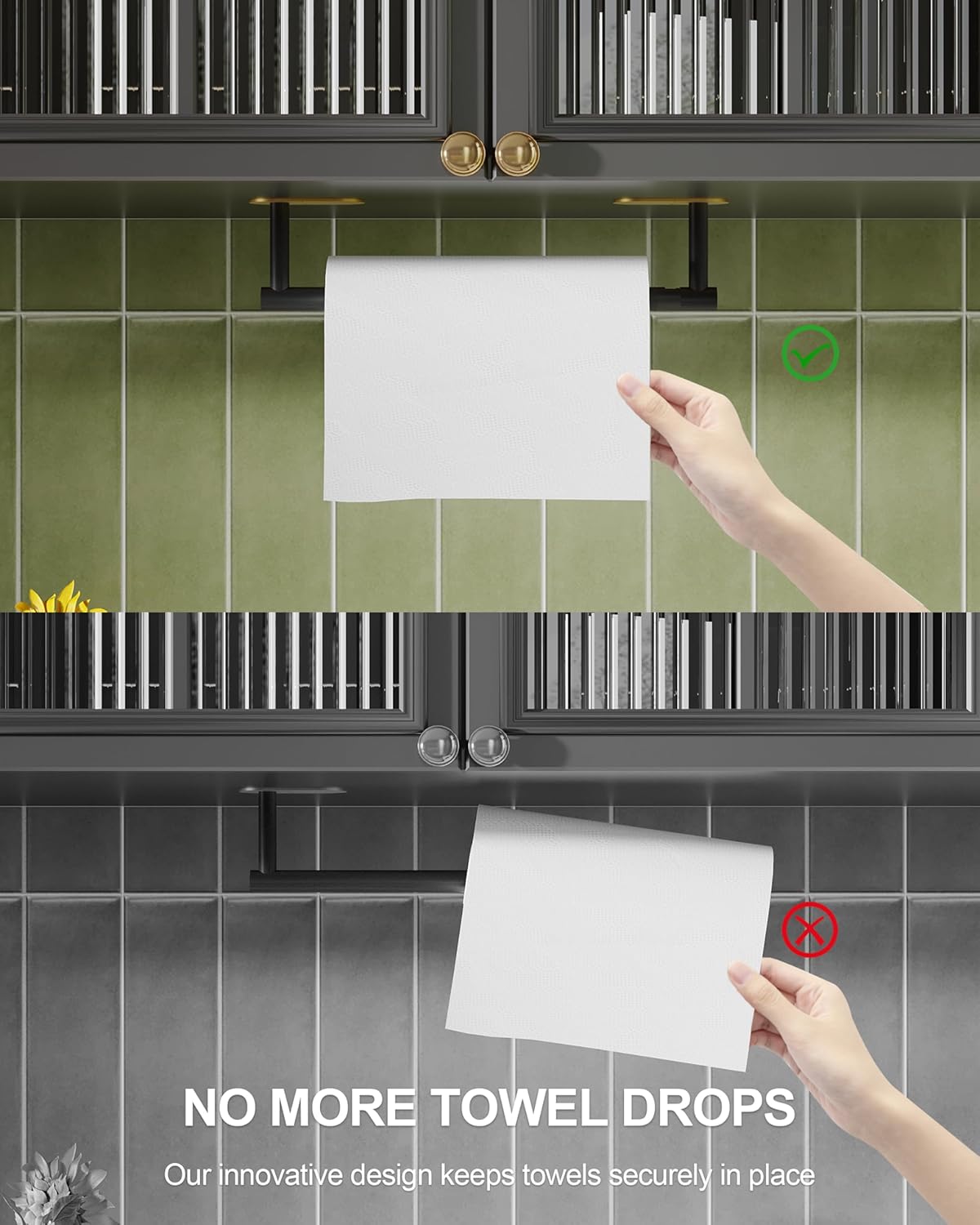 - 【DESIGN】: The double-post pivoting design makes it simple to replace the paper towels. The revolving buckle successfully keeps the kitchen towel from coming off, and the symmetrical design adds aesthetic value to your kitchen.