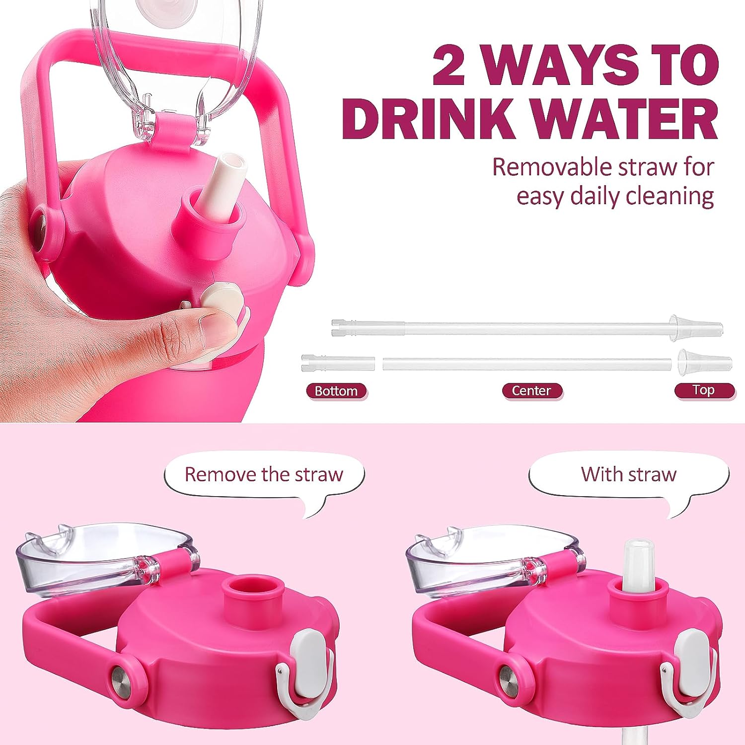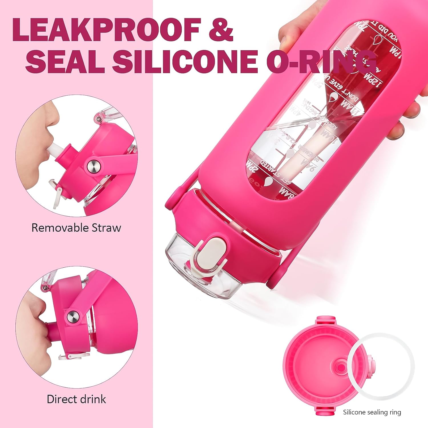 - ❤High-Quality Borosilicate Glass Bottle- This large motivationla water bottle is made of odorless, quality, borosilicate glass. Straw and lid are made of food-grade PP, BPA-free and eco-friendly.