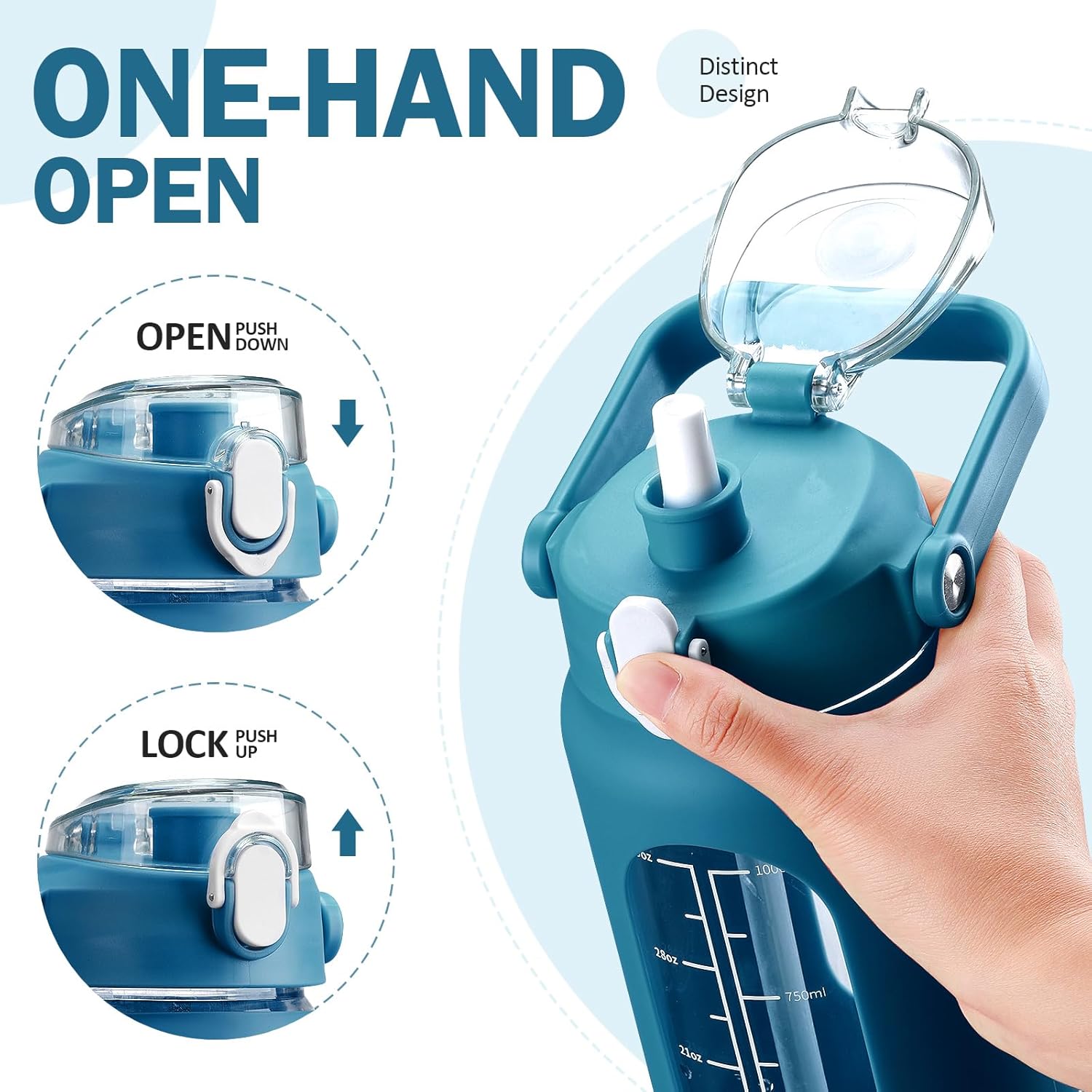 - ❤Glass Water Bottle with Pop-up Straw Lid- Kytffu large 42oz water bottle with straw is designed with an upgraded lid that ensures 100% leakproof and dustproof. Advanced one-click button makes you drink easier, just push the button and the straw will pop out automatically.