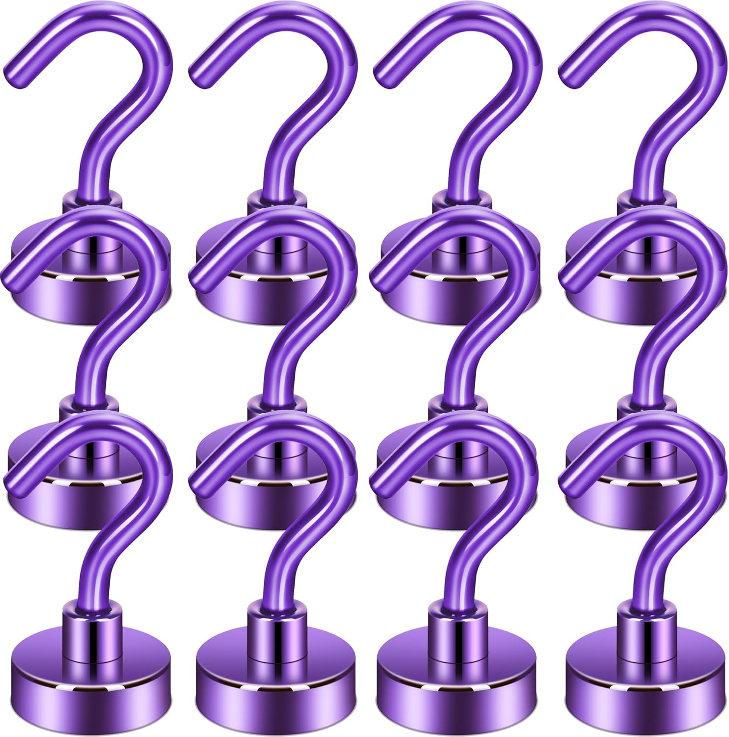 Neosmuk Magnetic Hooks, Cruise Ship Essentials, 30lb+ Heavy Duty Magnetic Hooks for Cruise Cabins, Refrigerator, Grill, Hanging, and Travel | Extra Strong Must-Haves Magnet Hook(Purple,Pack of 12)