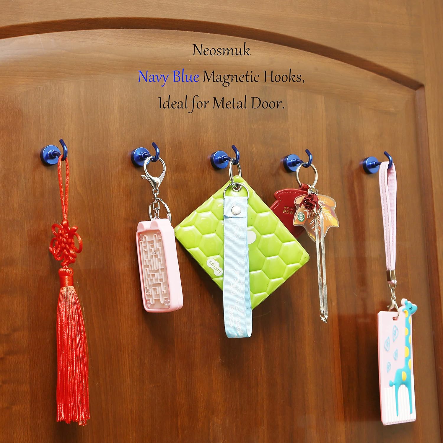 Neosmuk Magnetic Hooks, Cruise Ship Essentials, 30lb+ Heavy Duty Magnetic Hooks for Cruise Cabins, Refrigerator, Grill, Hanging, and Travel | Extra Strong Must-Haves Magnet Hook(Navyblue,Pack of 12)