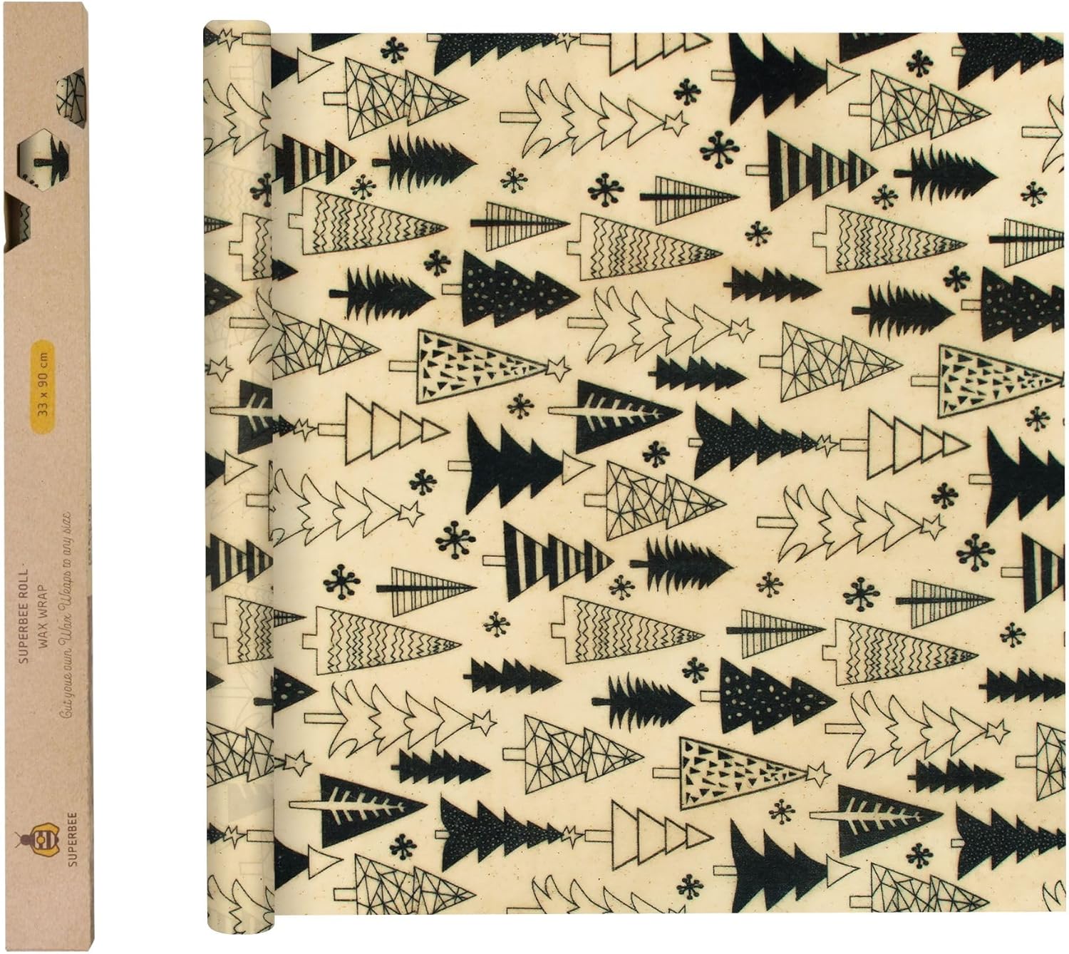 SUPERBEE Beeswax Wrap Roll XL, Reusable Beeswax Wrap for Food, Wrap Roll, Reusable Bees Wrap Paper for Wrapping Vegetables & Cheese, Bowl Covers and Sandwich Wrapping Paper, Christmas - 35x13"