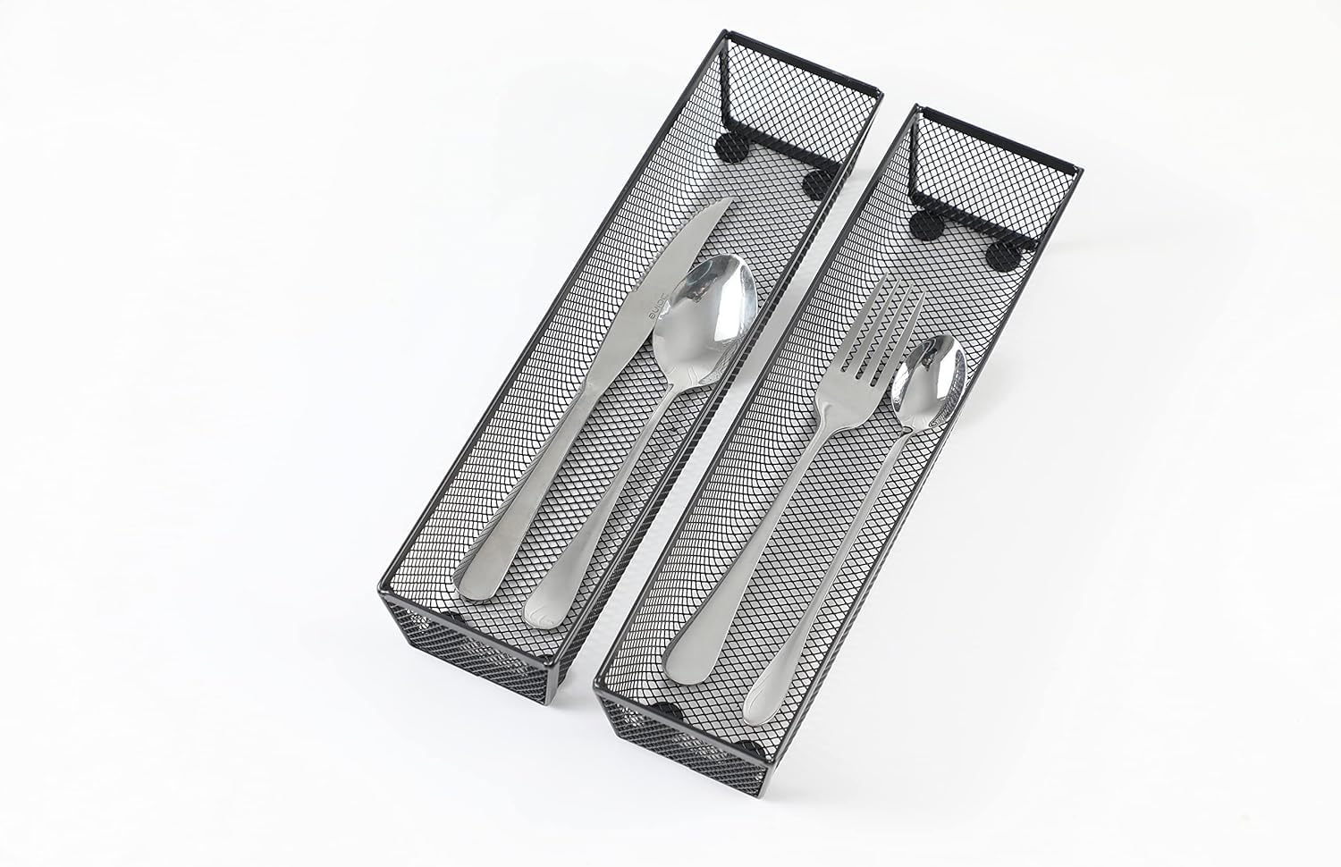 - Reliable Material: The Silverware organizers are made of quality steel mesh, not easy to deform or break. The thickened coating can keep it from cracking and peeling. Easy to clean and no upkeep is required.
