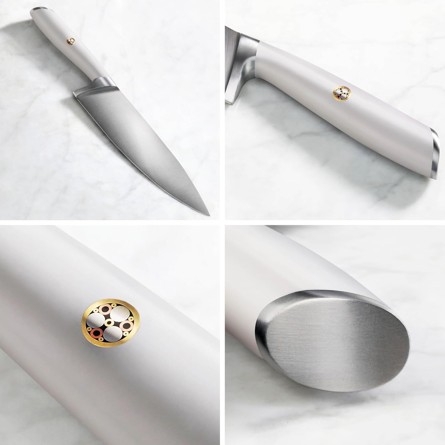 - Patented design knives focus on an ergonomic handle that provides an easy and comfortable grip. The well-balanced and comfortable handle works with the signature single mosaic rivet tastefully.