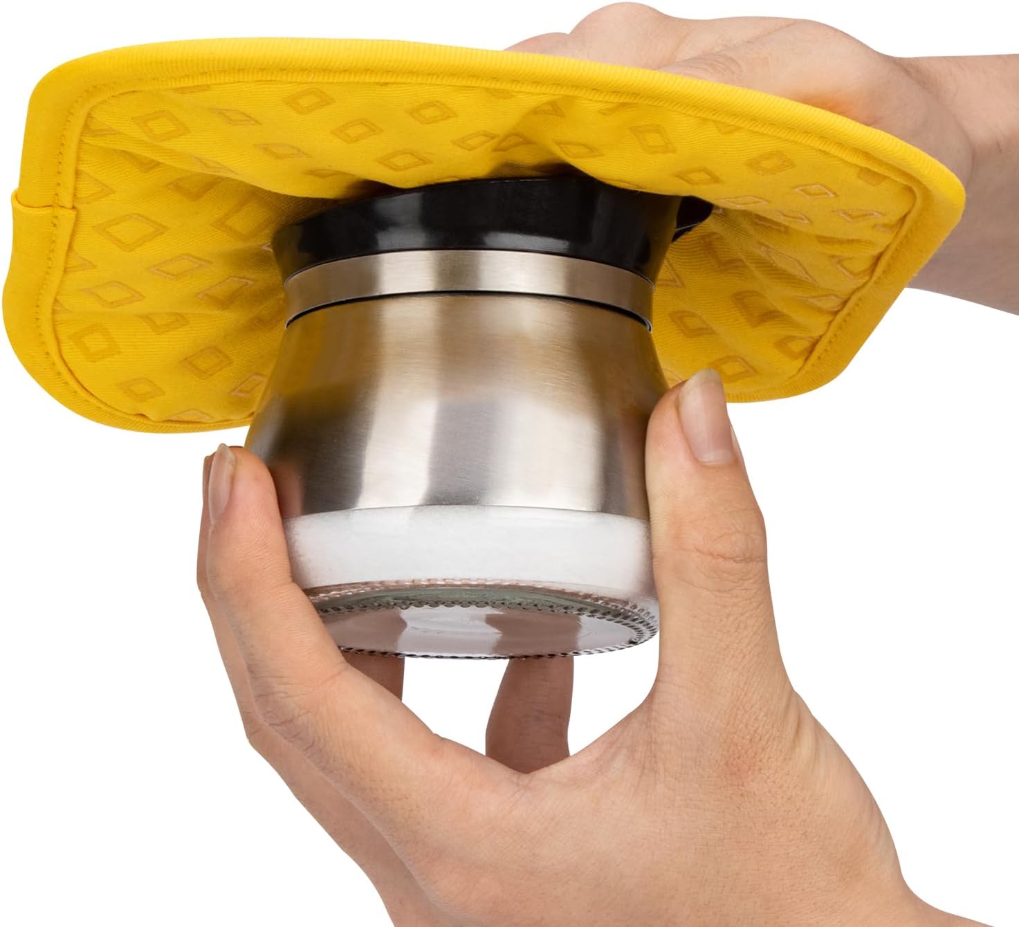 Set of 4 Oven Mitts and Pot Holders, 482 F Heat Resistant Hot Plate Moving Non-Slip Gloves for BBQ, Grill, Baking, Cooking, Oven, Microwave (Yellow)