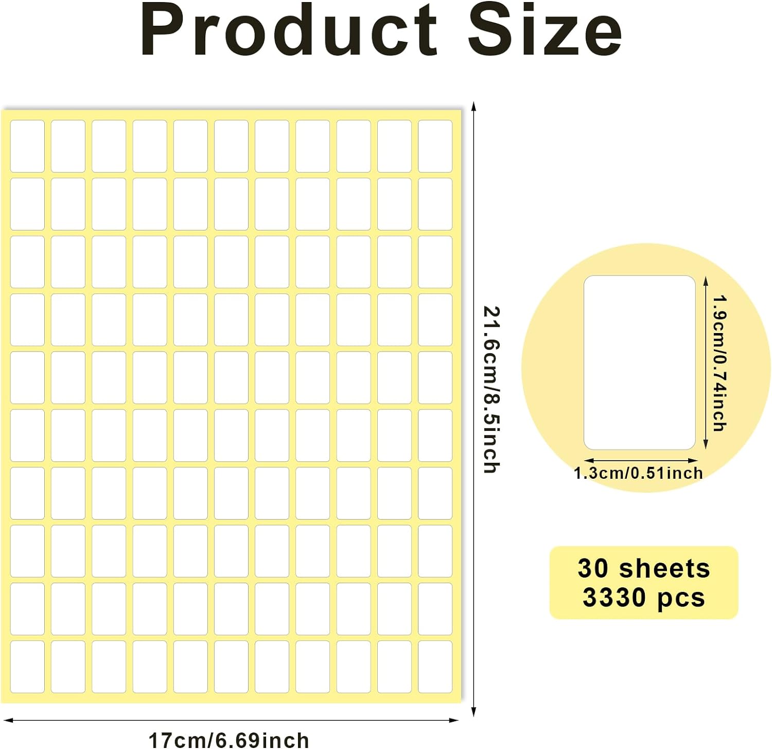 Sliverdew White Labels Stickers, 3300 Pack Small 0.5" x 0.75", Removable Blank Labels for School, Office, Kitchen, 110 Labels per Sheet, Paper, Rectangular, 3300pcs