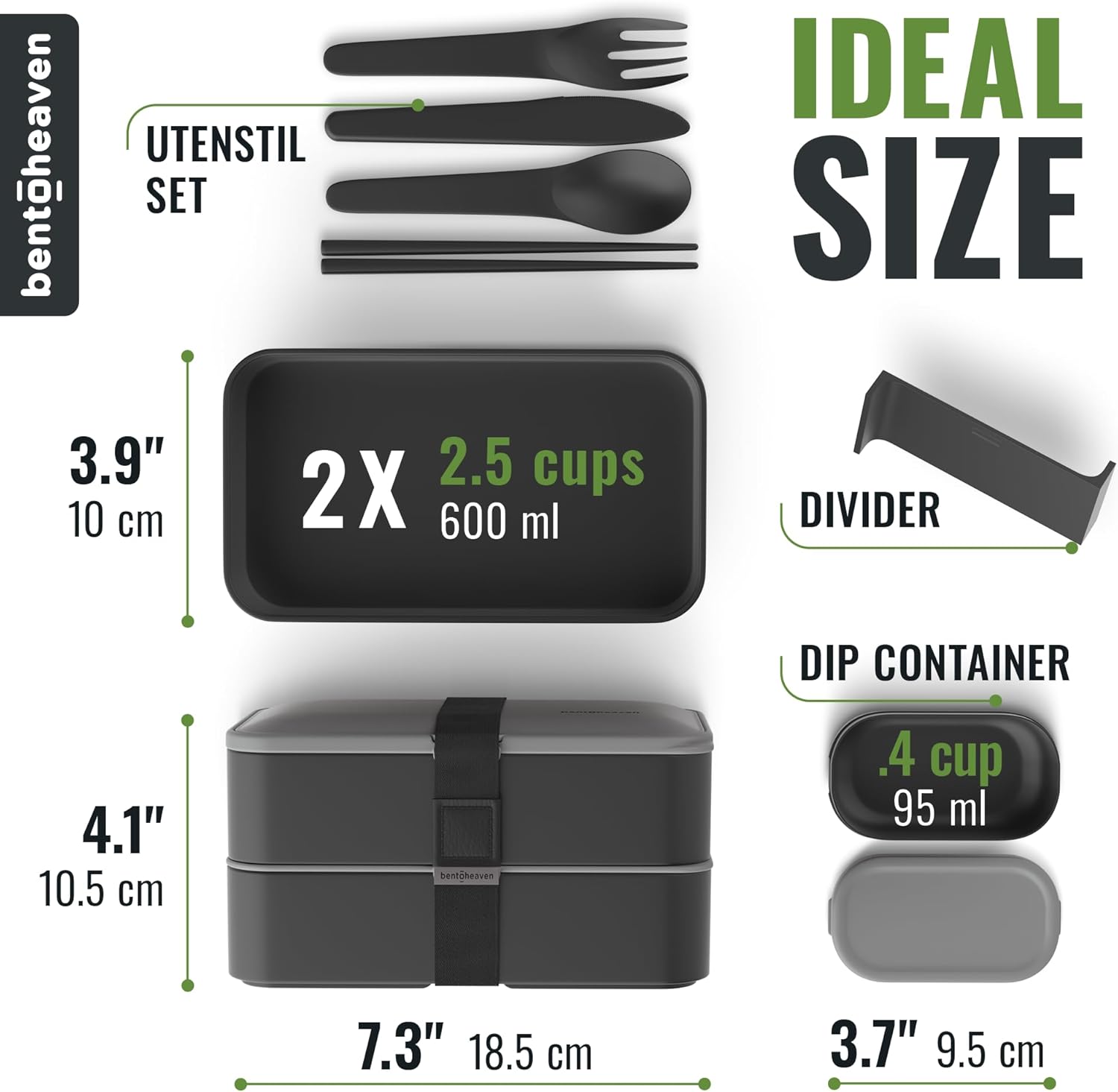 Bentoheaven Premium Bento Box Adult Lunch Box with Compartments for Women & Men, Set of Utensil & Chopsticks & Dip Container, Cute Japanese Kids Bento Lunch Box, Microwavable (Whispering Gray)