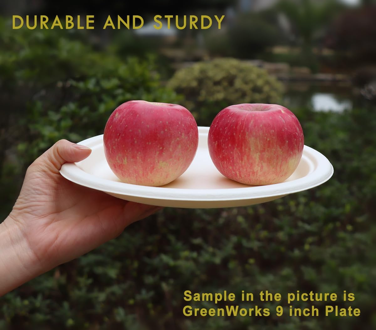 GreenWorks 500 Count 6“ Small Compostable Dessert Plates, Heavy-duty Unbleached Biodegradable Bagasse and Bamboo fiber Paper Plates