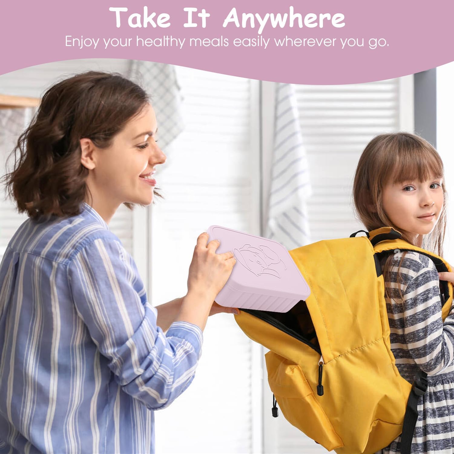 - 【Say Goodbye to Mess】The silicone bento box lunchbox for Kids has individual compartment to keep food neat and separate. The leak proof silicone lids seal tightly around the lip of the container and ensure that the box remains tightly sealed during transport, preventing any spills or accidents. Easy to open and close for little fingers. Meanwhile,anti-slip design make the silicone bento box more safe